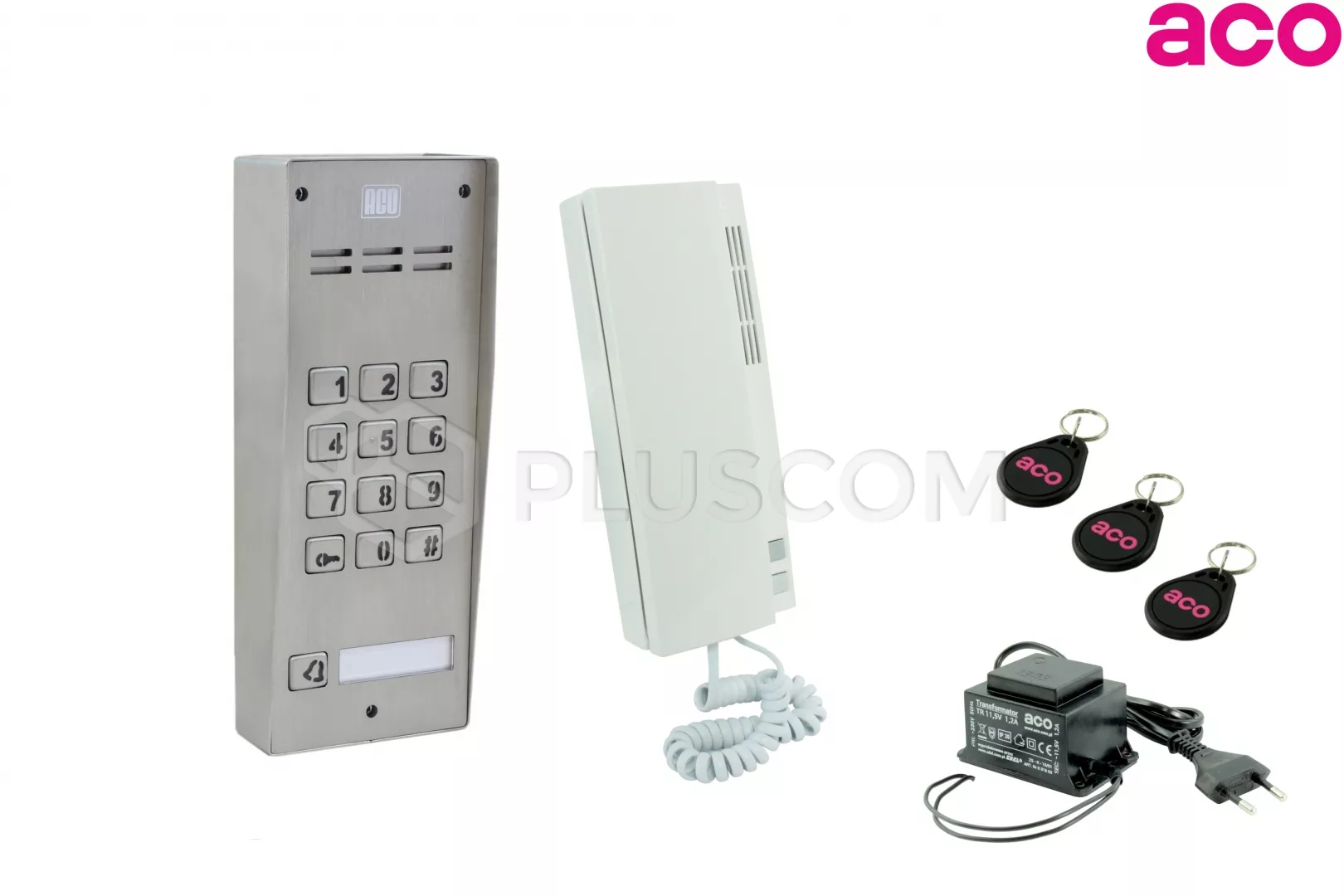 ACO Zestaw domofonowy jednorodzinny z czytnikiem kart, breloków zbliżeniowych i zamkiem szyfrowym