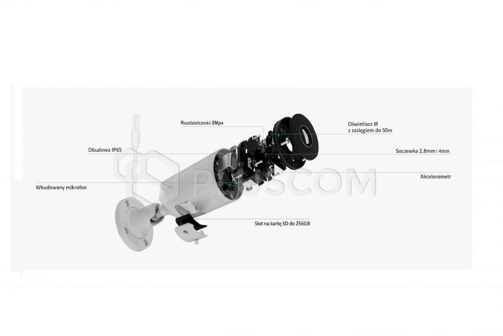 - W zestawie: Kamera, akcesoria instalacyjne, skrócona instrukcja