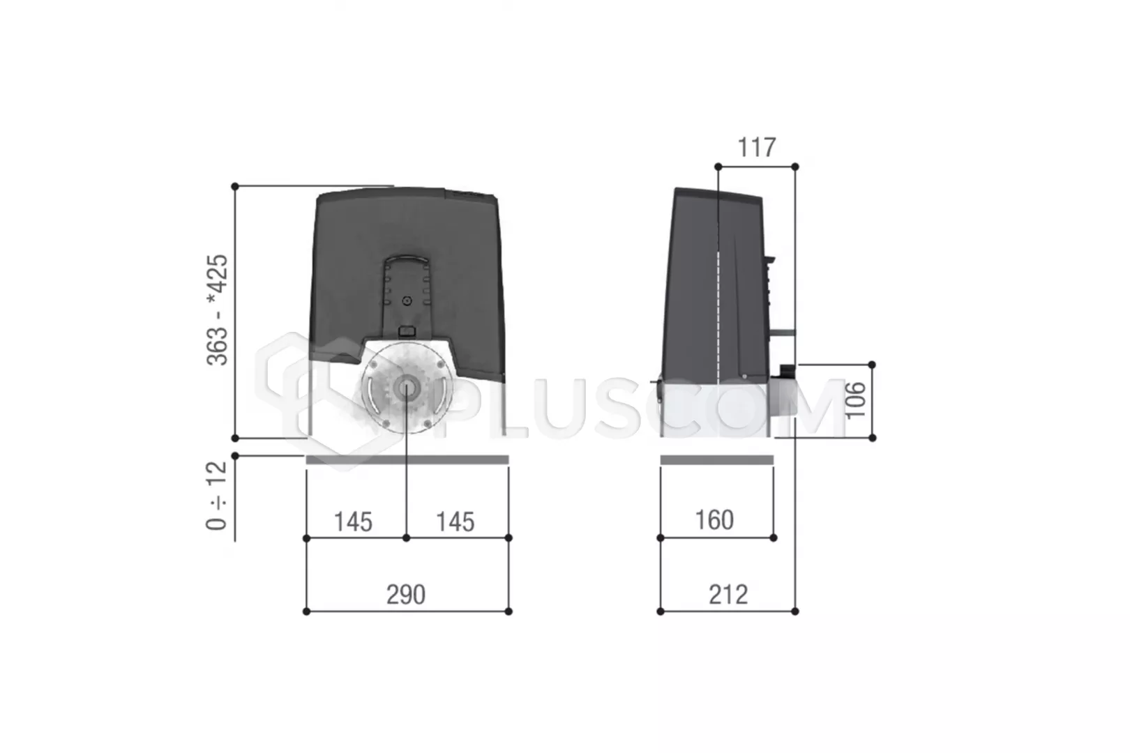 BXV06AGF Siłownik umożliwia automatyzację bram przesuwnych o: