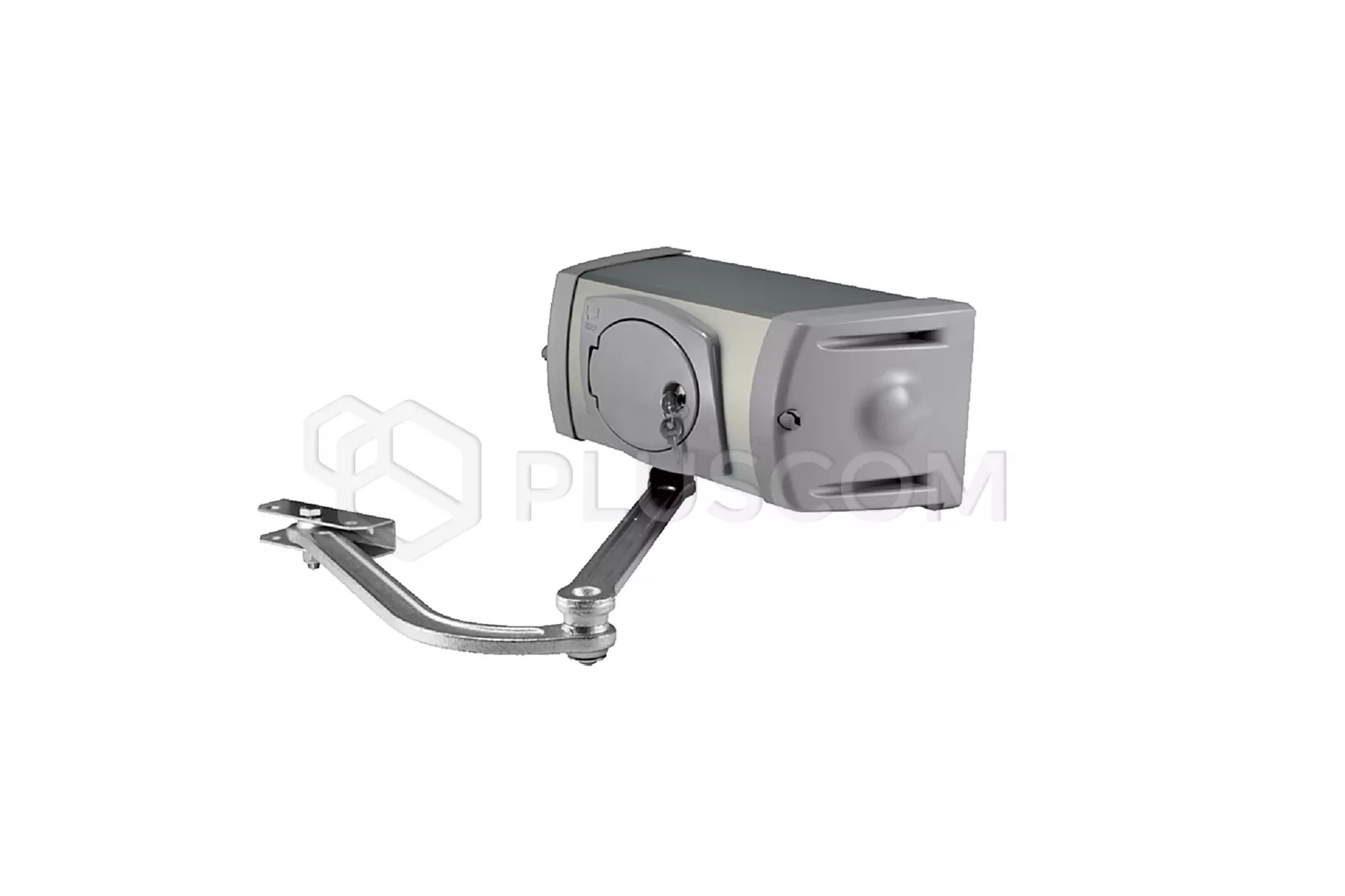 Montaż nie wymaga żadnych prac budowlanych ani usuwania skrzydeł, oferując maksymalne dostosowanie do wszystkich potrzeb instalacyjnych. Rozwiązanie jest dostarczane seryjnie z ramieniem przegubowym, lecz jest także dostępne specjalne proste ramię do instalacji w przypadku obecności ścian lub ogrodzeń w pobliżu bramy.