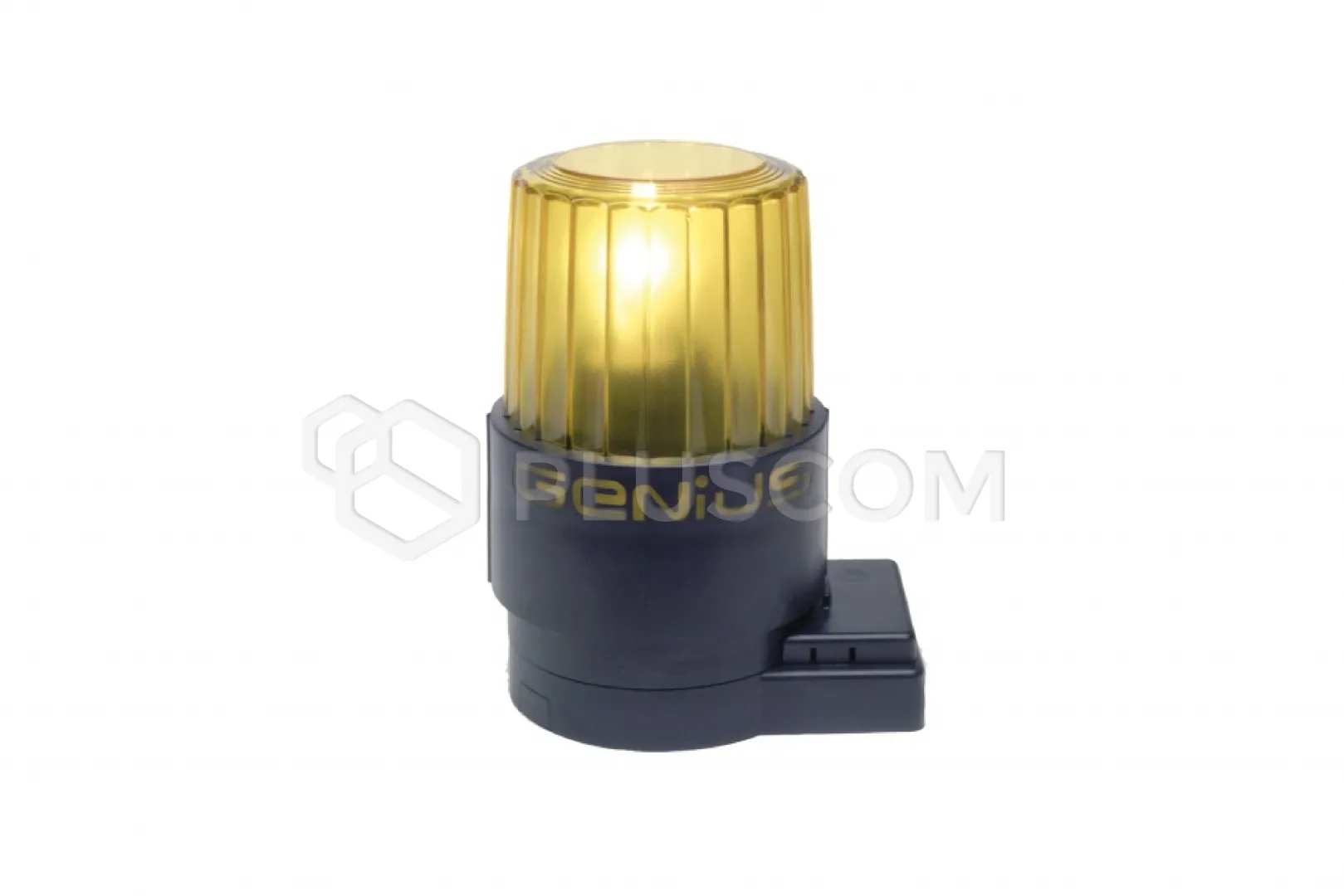 Erhältlich in Versionen mit 230 V und 24 V, mit Dauerlicht (Blinken über Bedienfeld gesteuert) oder intermittierendem Licht (Blinksteuerelement in der Lampe integriert).