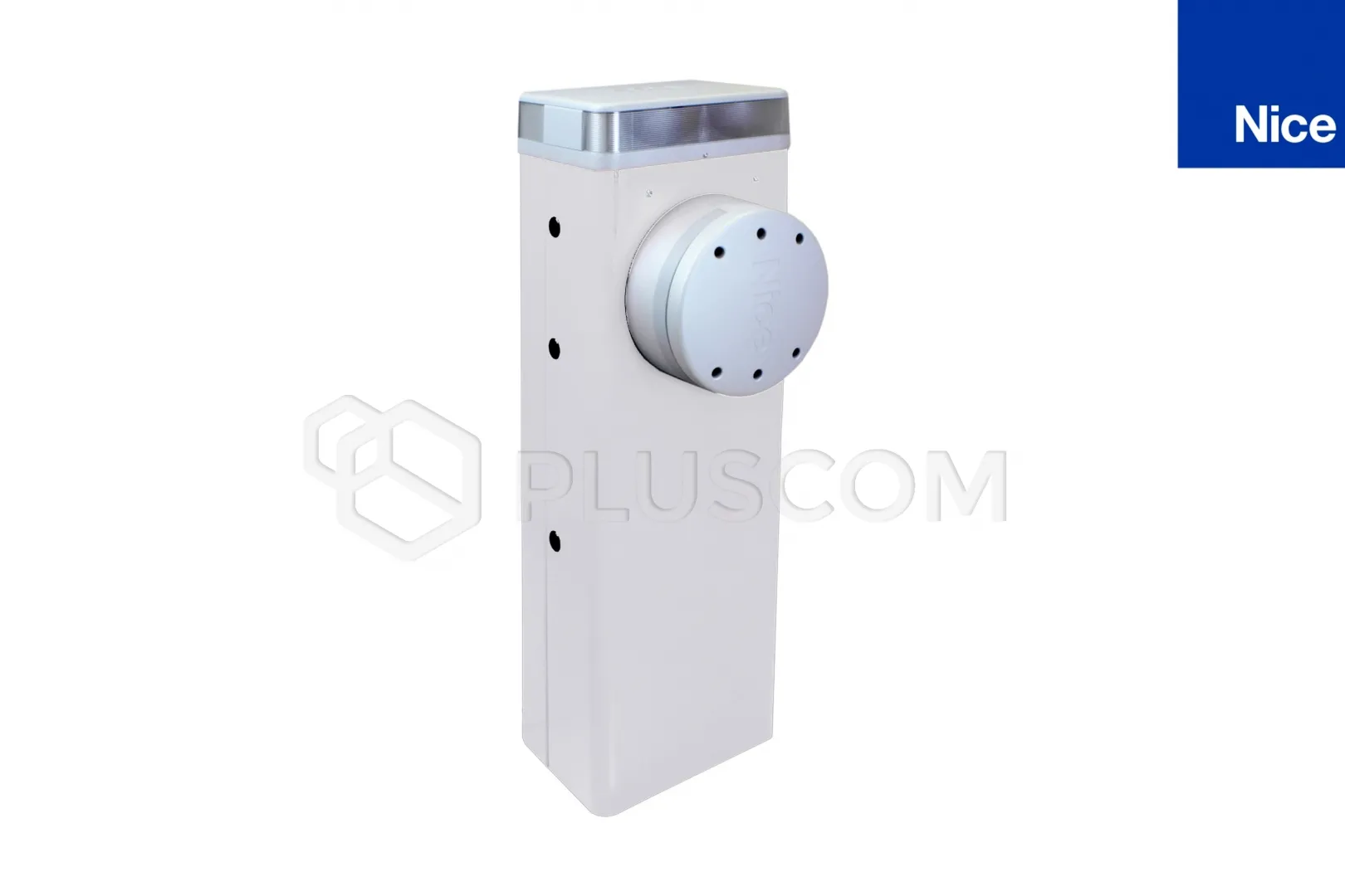 Die Zentraleinheit Nice M7BARWH1R10 ermöglicht die Installation eines Arms mit einer maximalen Länge von 7 m. Der 24-V-Motor mit Encoder und einer Leistung von 110 W verfügt über ein Drehmoment von 300 Nm. Die eingebaute Steuerzentrale BCU1 mit Bluebus-Technologie verfügt nicht über werkseitig eingebaute Schleifendetektoren. Im Steckplatz des Funkempfängers befindet sich ein Satz Dip-Schalter (werkseitig eingestellt), mit denen die Eigenschaften der Zentrale an das Modell der Schranke angepasst werden können, in der sie installiert ist.