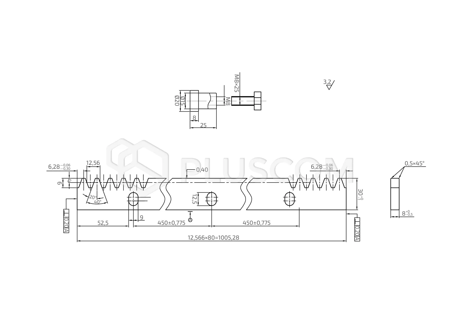 PSG 60.051 Stahlzahnleiste 1000x8 mm
