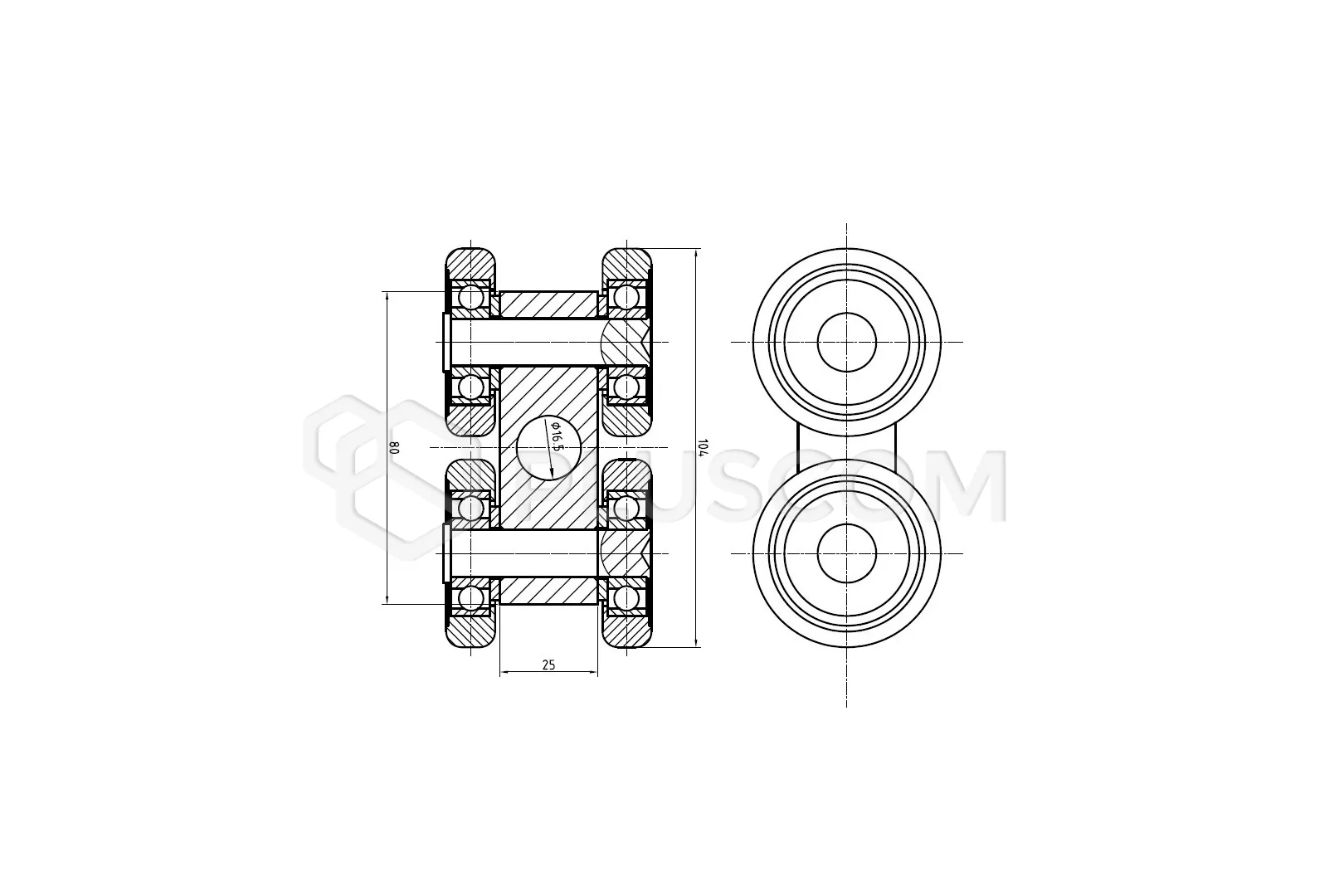 • Abstand zwischen den Rollen: 55 mm