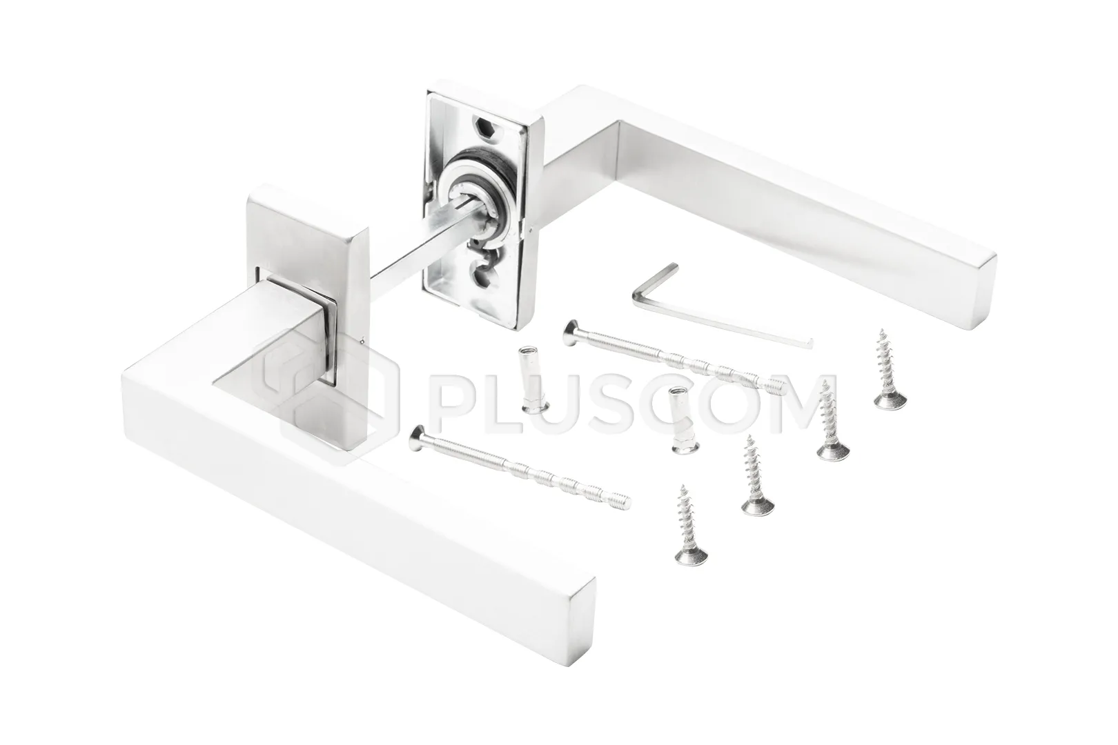 • Inhalt des Sets: 2 Stück Türgriffe, Montagesatz, Verbindungsstift