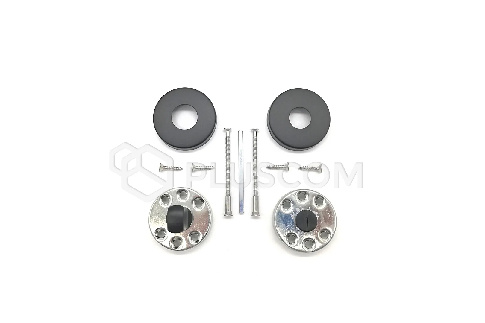 Die runde Rosette ergänzt das Angebot an Türgriffen für Wohn- und Büroräume. Das schwarze Schild passt perfekt zu modernen Türgriffen in derselben Farbe.