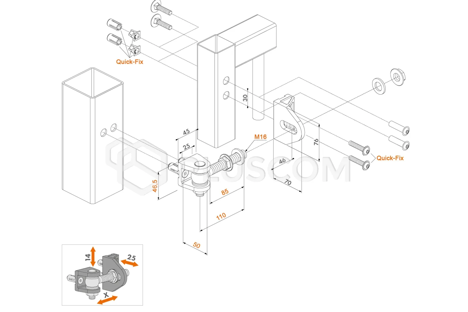 PSG LO.BOLTONHD-4D-M16QF-ALUM-110-02 Verschraubbares Scharnier, einstellbarer Winkel 180° 2 Stück