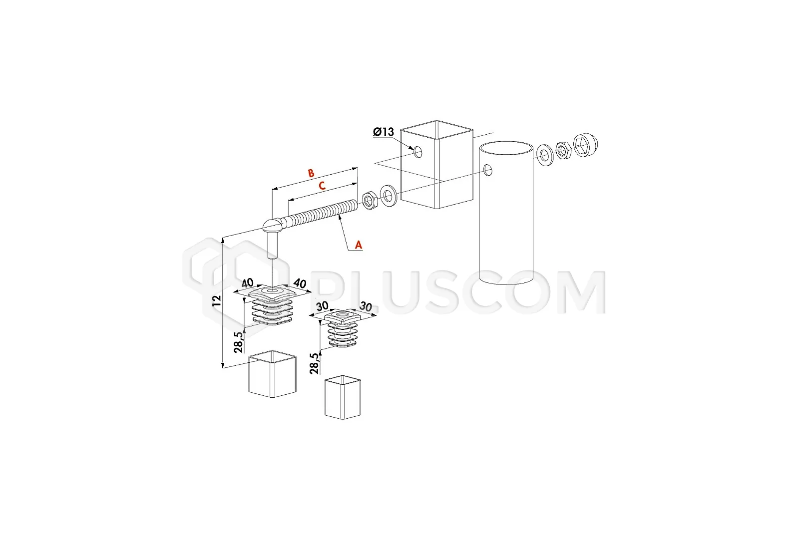 • Produkt mit 40x40 mm Abdeckkappe erhältlich