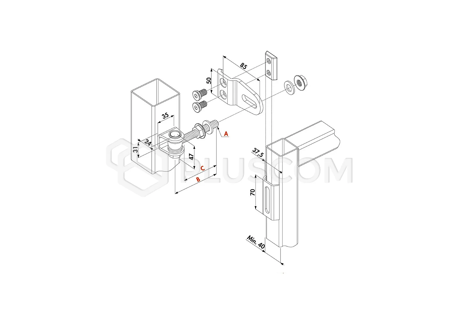 • Schraube und Scharnierfuß, feuerverzinkt
