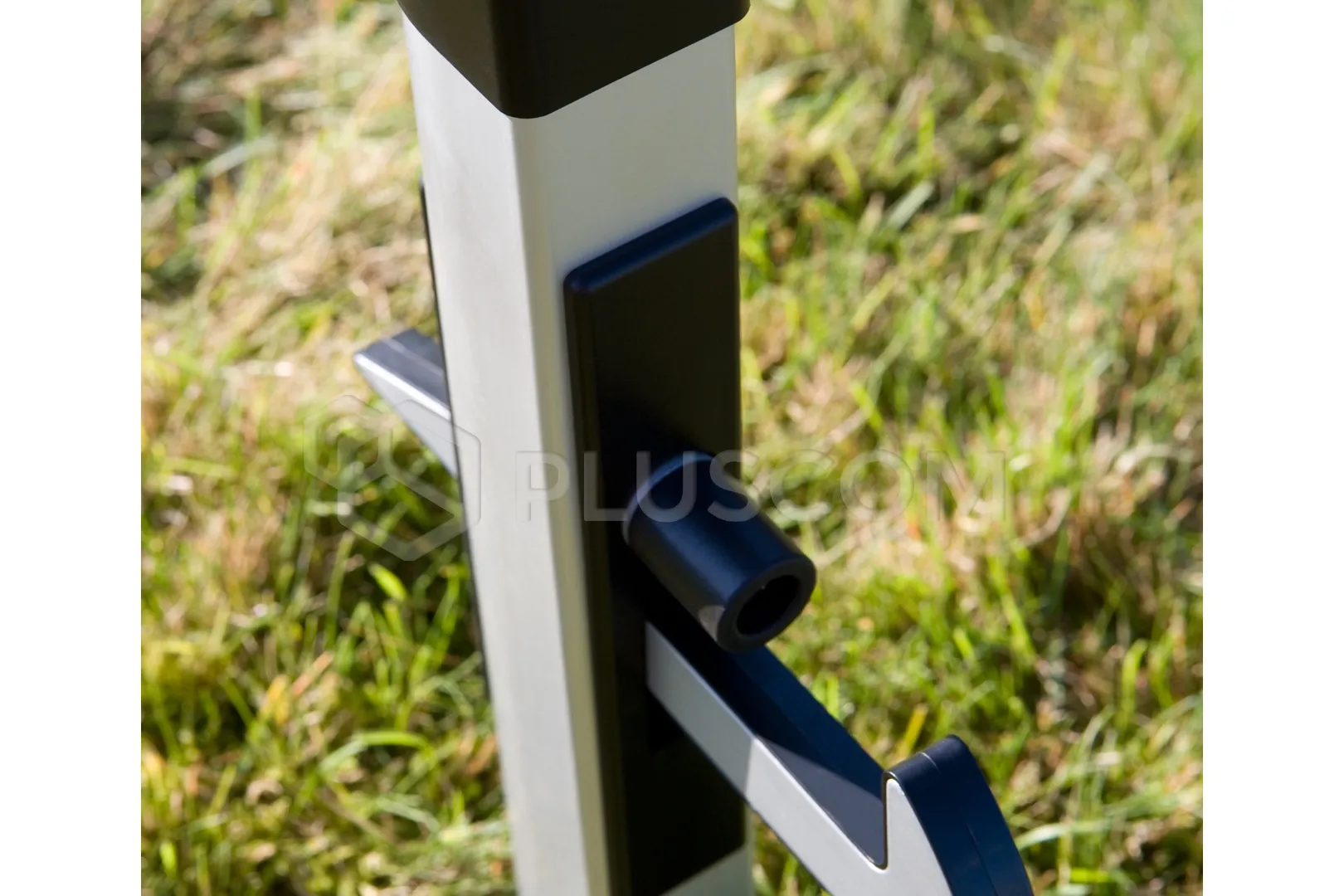 Torfänger aus Aluminium. Der verstellbare Greifer lässt sich leicht drehen. Gummipuffer und Greifer mit Kunststoffkante schützen das Tor vor Beschädigungen. Montage in Beton.