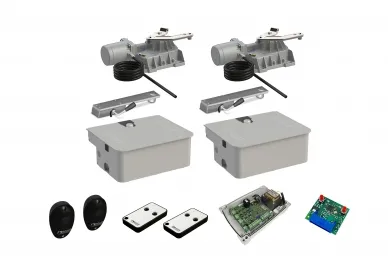 Die Öffnungszeit bis 90° beträgt 10-25 s. Das Gerät verfügt über einen eingebauten digitalen Encoder und mechanische Begrenzer zum Öffnen und Schließen. Getriebe aus Metalllegierungen, ohne Kunststoff, ohne Teflon, ohne Nylon. Steuerung über digitalen Encoder. Zeichnet sich durch leisen und schnellen Betrieb sowie eine Lösung aus, die das Aussehen des Tors nicht beeinträchtigt.