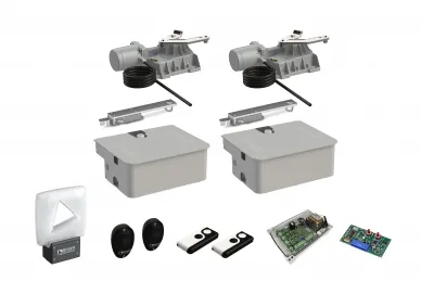 • 2 x Fernbedienung SYNUS/2, Fotozellen R90/F4ES, Steuerung EDGE1/BOX, Lampe FIFTHY/24