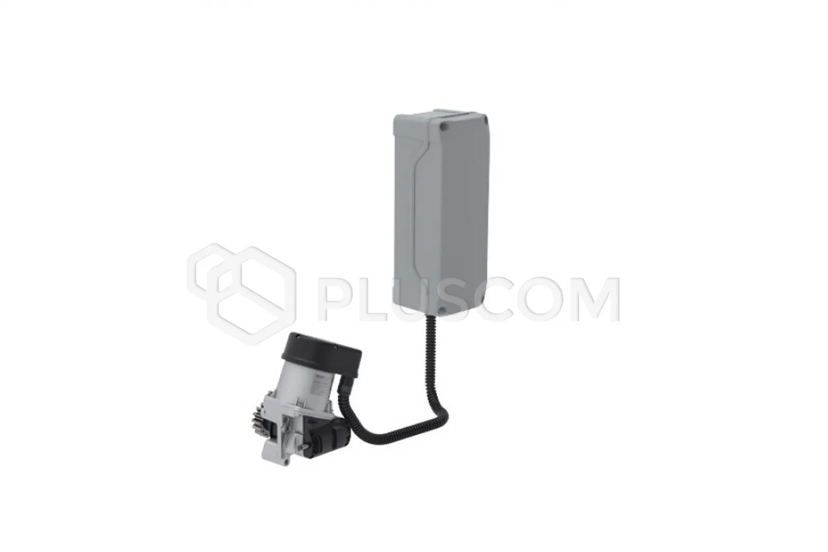 Säulenantrieb mit bürstenlosem HIGH SPEED 24V-Motor (25 m/min), für sehr intensive Nutzung, für Schiebetore mit einem Gewicht von max. 600 kg, mit Absolutwertgeber, mit vom Antrieb um max. 1 m getrennter Steuerung B70/1T, ohne Endschalter.