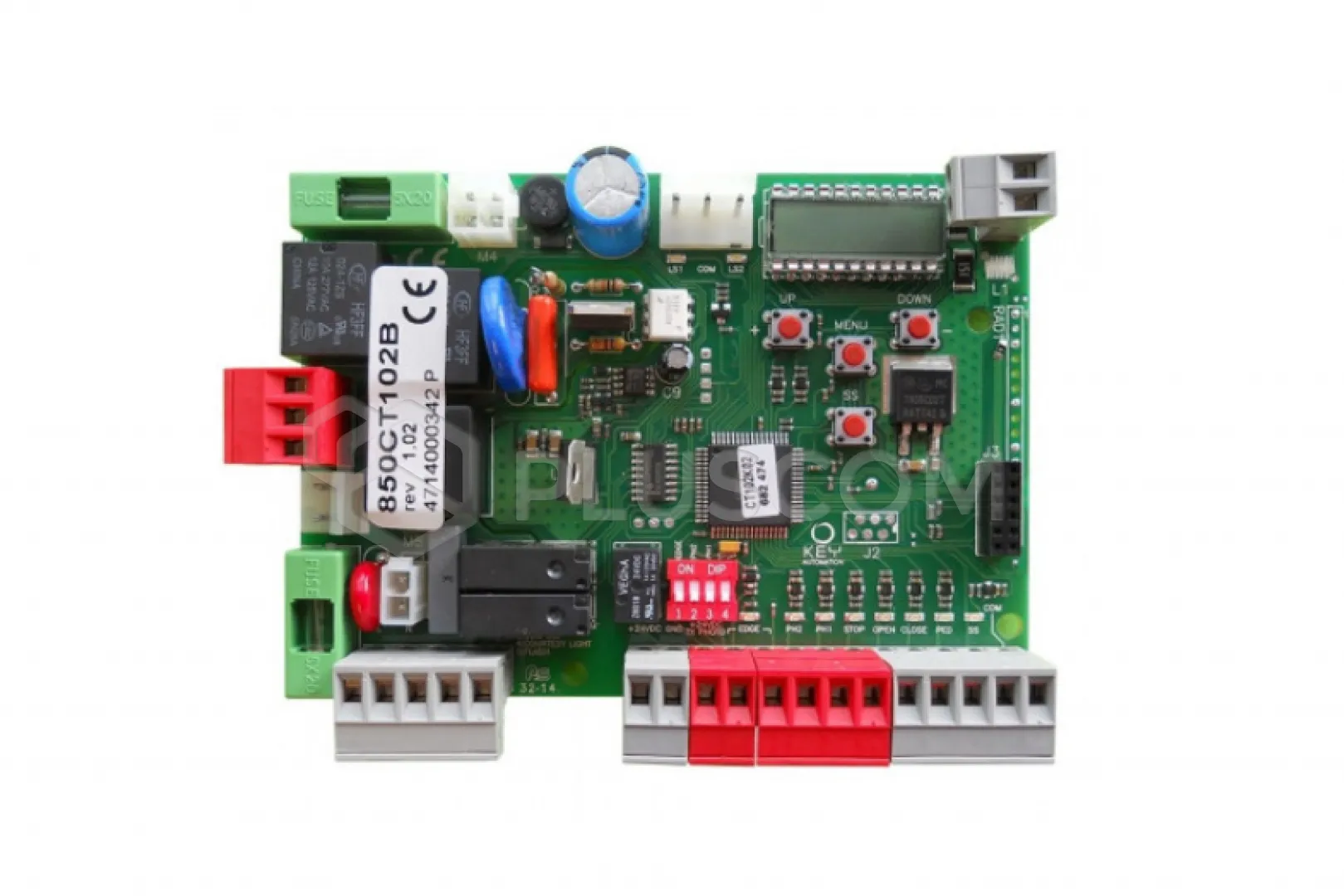 ACT102B - Control unit for controlling one 230V actuator for sliding gates and garage doors, with electric lock support, slowdown during opening and closing, and the ability to connect a radio receiver.