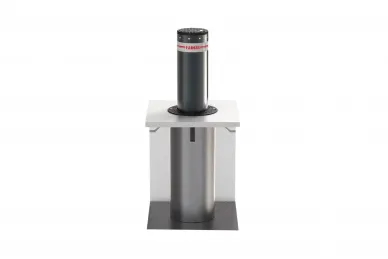 It is equipped with an integrated hydraulic unit and hydraulic actuator piston, which are located inside the bollard column. A solenoid valve allows the post to lower within 5 seconds in the event of a power failure.
