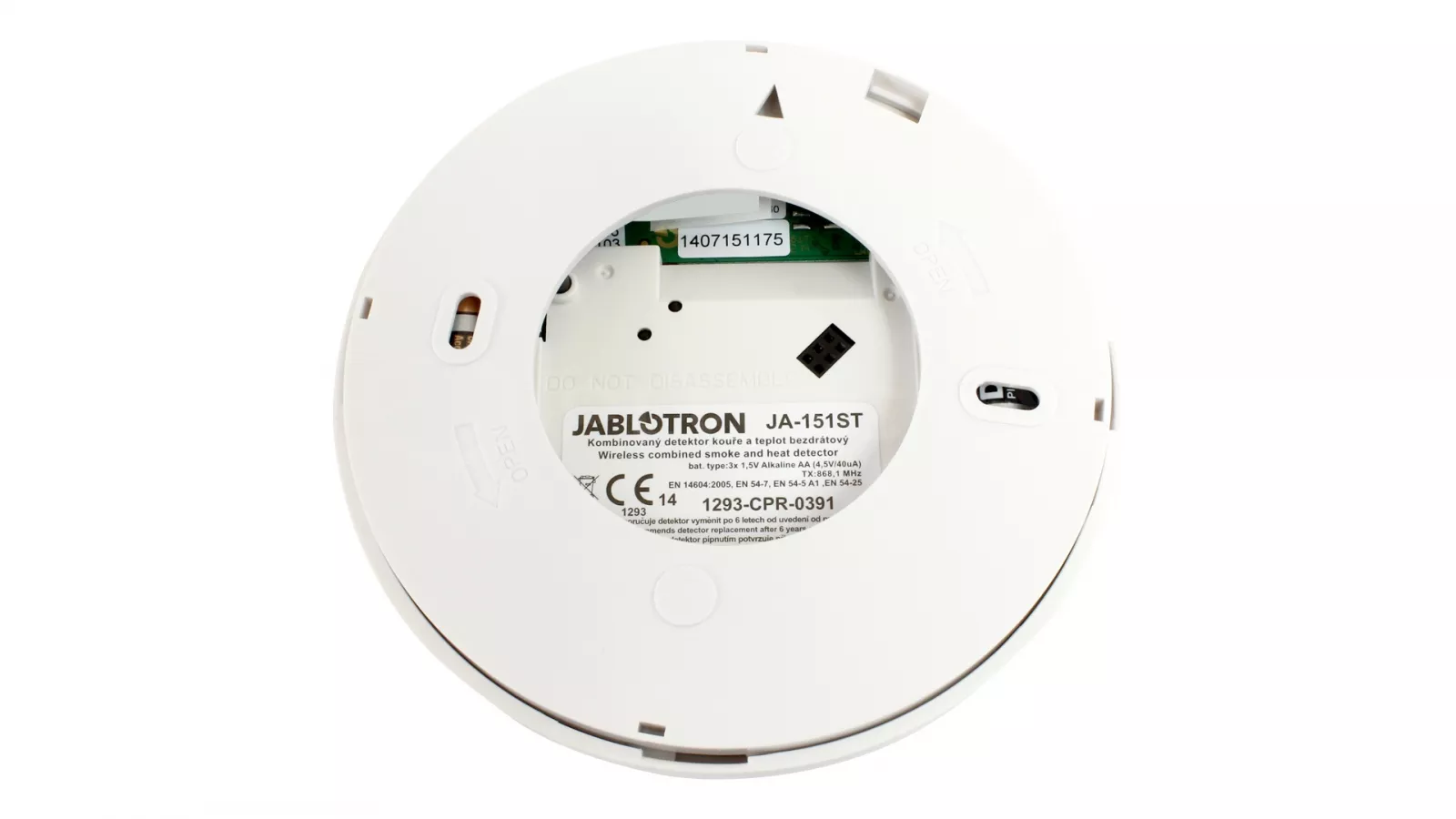 JA-151ST is designed to detect the presence of fire inside residential, commercial and light industry buildings. The battery powered detector has a built-in local warning siren combined with a transparent LED indicator. The alarm information can also be transferred via a wireless connection to the Jablotron 100 system. The JA-151ST detector combines an optical smoke sensor with a heat sensor. Both sensors have their outgoing signals processeddigitally, resulting in higher false alarm immunity.