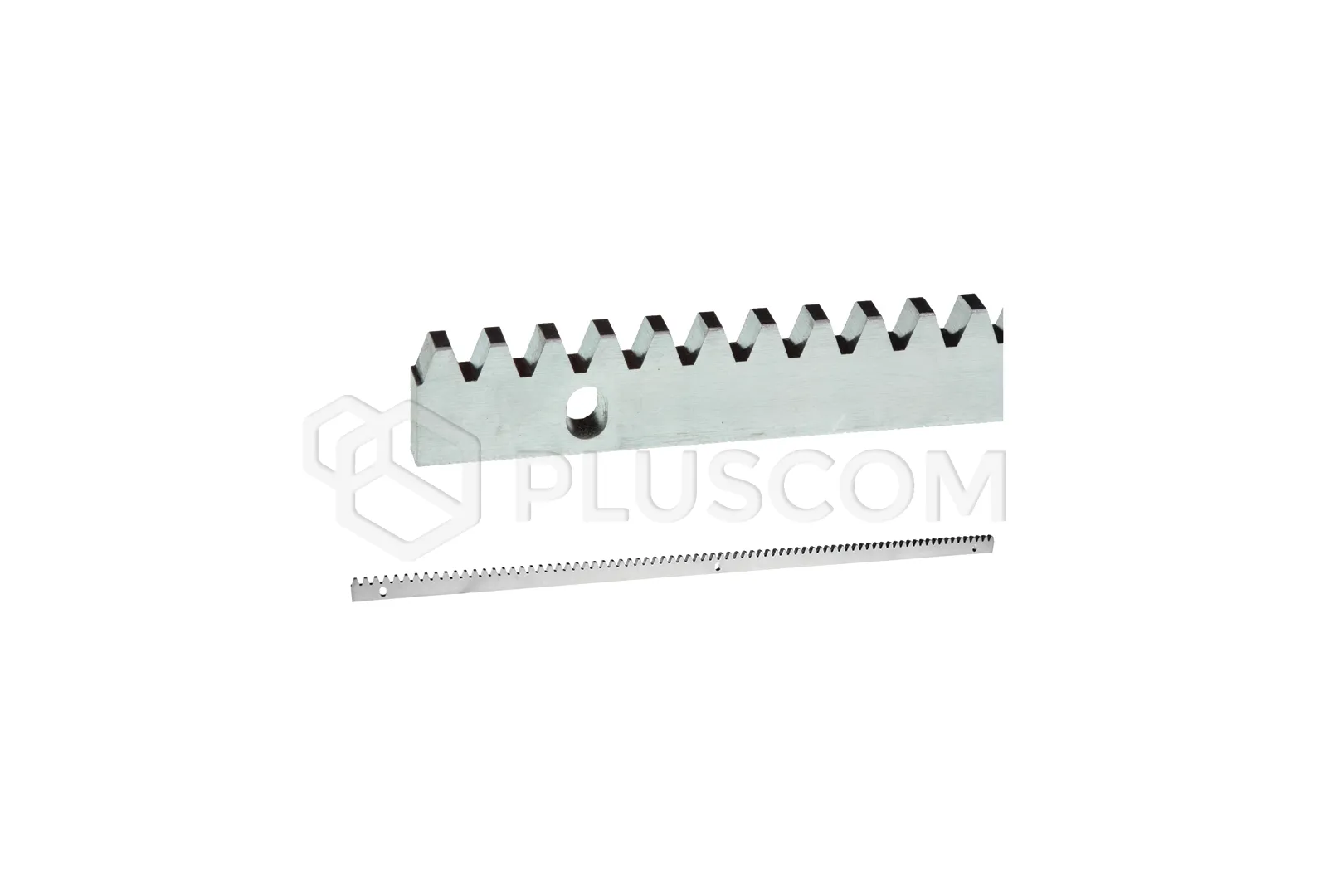 Steel toothed rack for self-supporting sliding gates - length: 1000 mm; thickness 8 mm. It has special holes that facilitate leveling (so-called beans). The set does not include mounting sleeves.