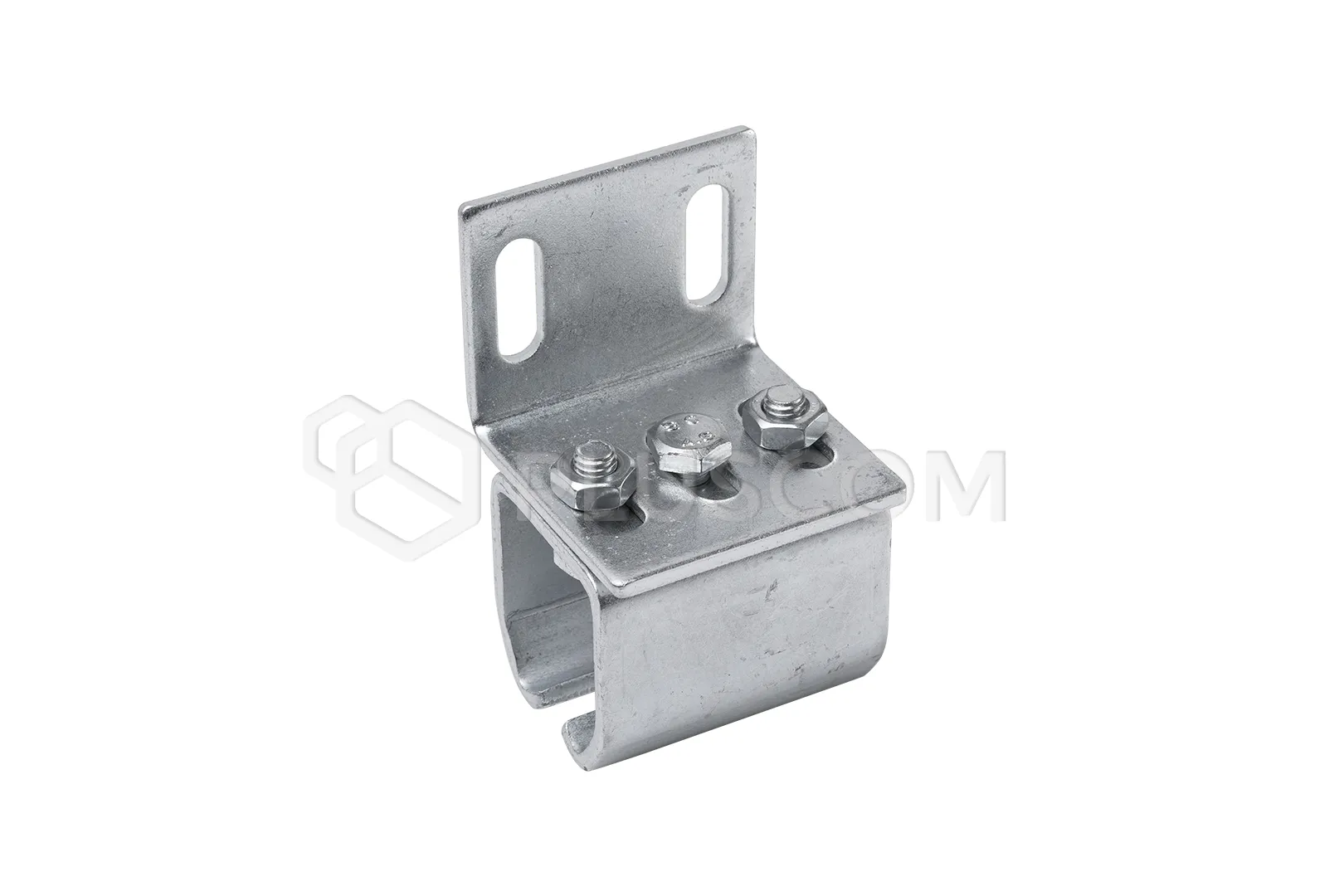 Galvanized hanger for a 50x46mm C-profile (rail) used in suspended gates.