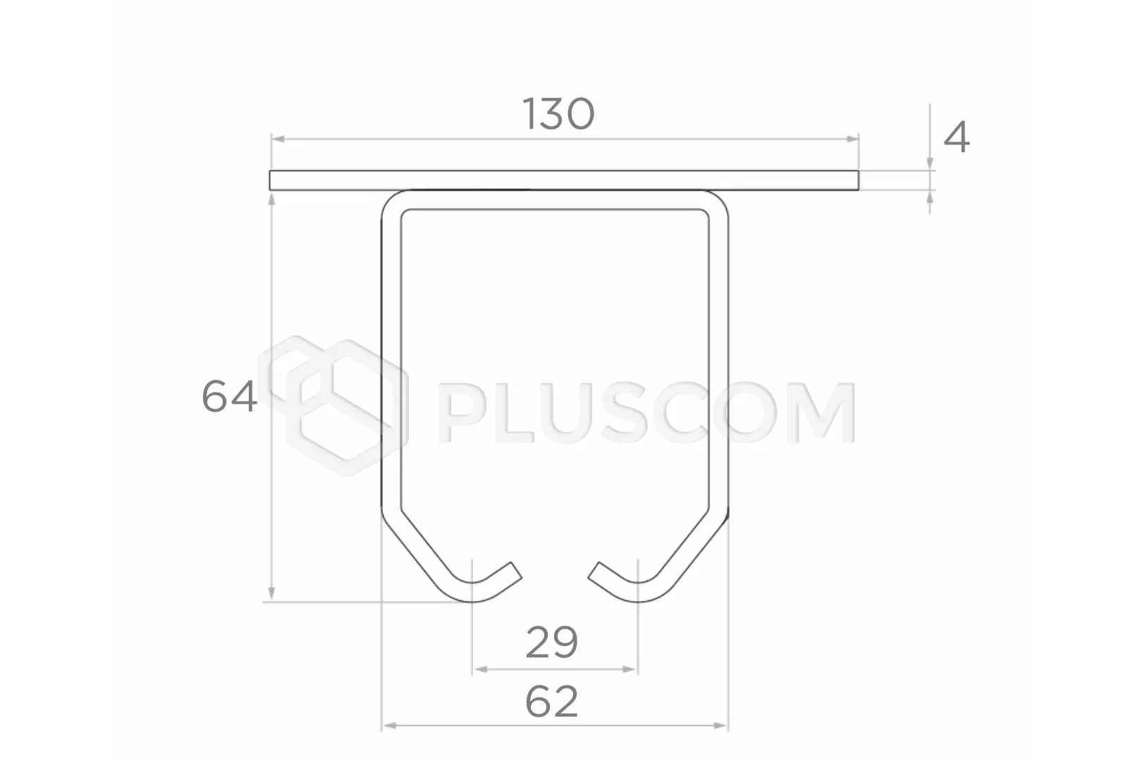 A galvanized hanger measuring 64x62 mm, designed for a C-profile rail measuring 50x46 mm, used in suspended gates.