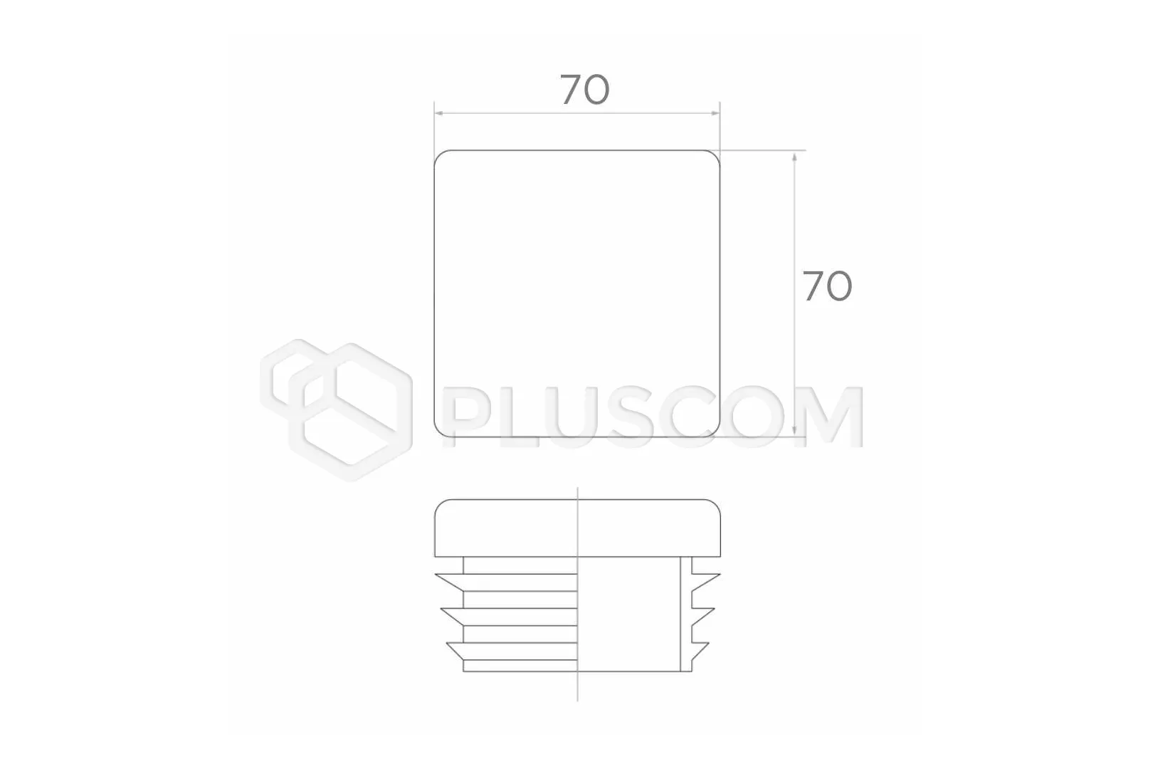 Plastic plug in anthracite color, for square profile 70x70 mm. It is used to plug steel, aluminum or plastic holes. It is used in construction and industry, as well as in gardening to mask posts, holes in fence spans and gates. External dimension 70x70 mm.