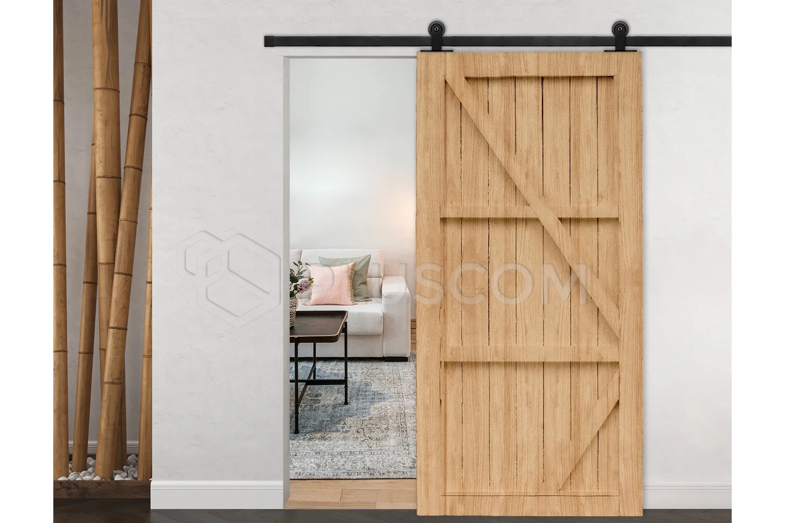 The sliding door system will work great in a modern interior, especially in rooms inspired by Scandinavian and industrial style.