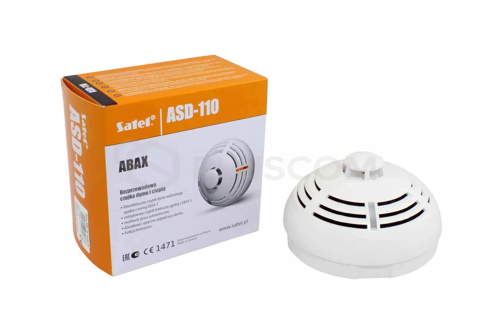 Multi-sensor Detector ASD-110 can detect an early stages of a fire, if there is avisible smoke and/or if the temperature increase. It can workindependently or as a part of a two-way wireless system ABAX. Fordetecting visible smoke it uses a optical method. When concentrationof a smoke in optical chamber exceeds a certain threshold, an alarmis triggered. Parameters of a smoke detector are modified accordingto changes recorded by the temperature sensor (thermistor).