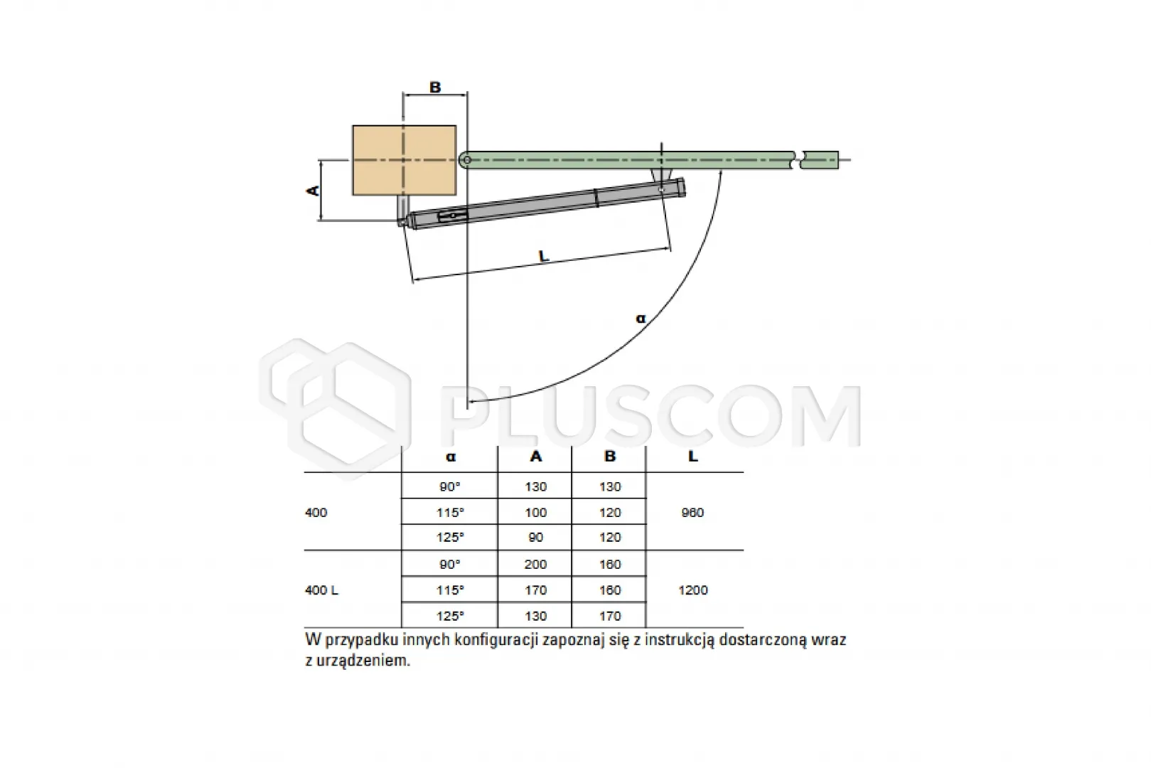 W komplecie: napęd z hydrauliczną blokadą otwarcia i zamknięcia, akcesoria montażowe, kondensator rozruchowy 8 μF/400 V, klucz do rozblokowania napędu.