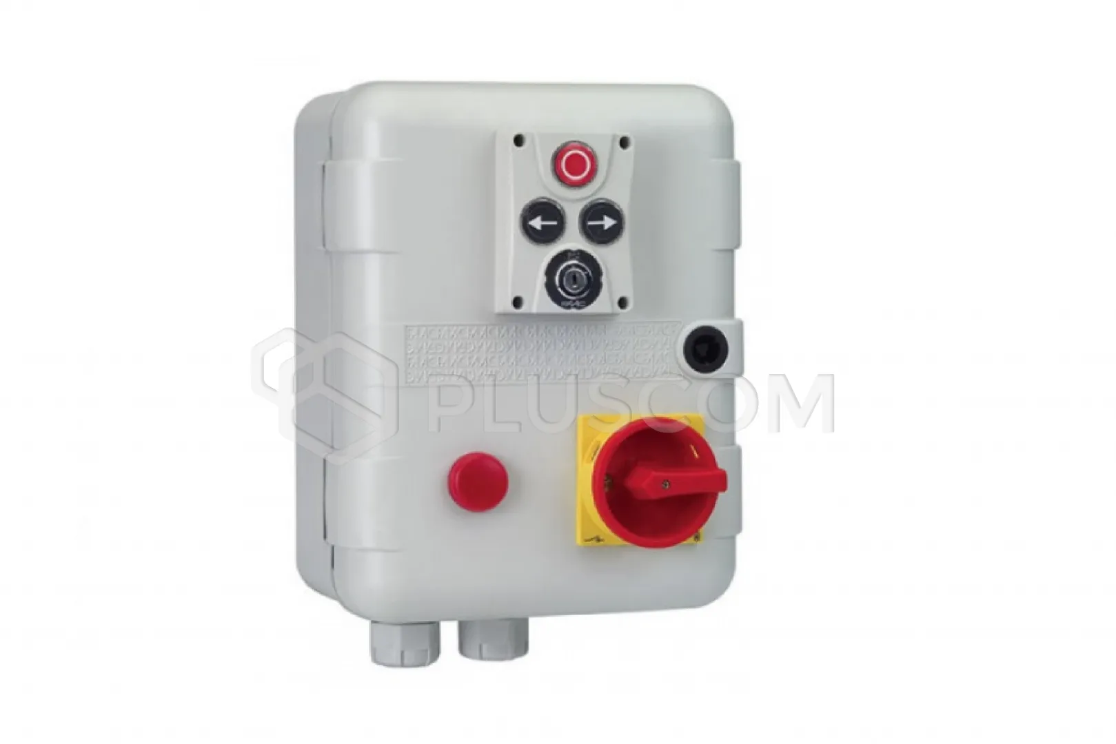 Centrala sterująca EB 578 D 3F (w tym obudowa 578 D, wyłącznik, przyciski zdalnego sterowania, panel sterujący i klucz aktywujący) do przemysłowych bram segmentowych FAAC 541 3PH.