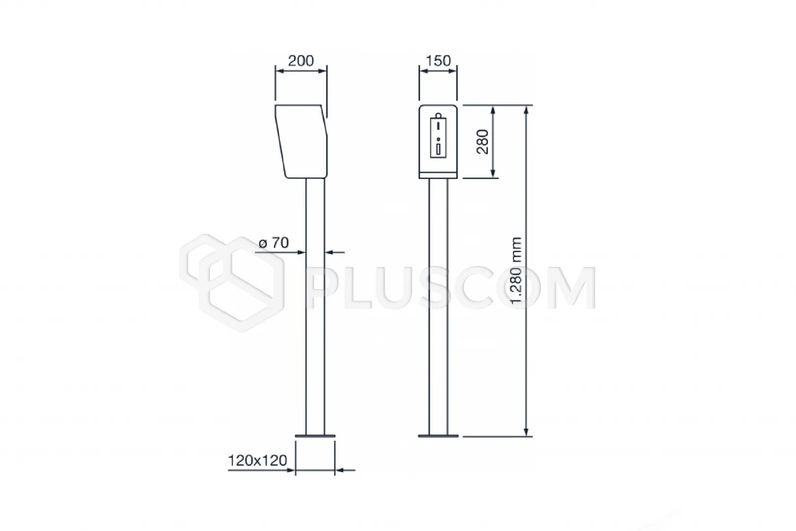 Żetoniarka na żetony GECO 9 24V ze stali malowanej proszkowo poliestrem RAL 2002 (pomarańczowo-czerwona), kompletnie z podstawą kotwiącą i śrubami mocującymi do użytku posesyjnego i przemysłowego.