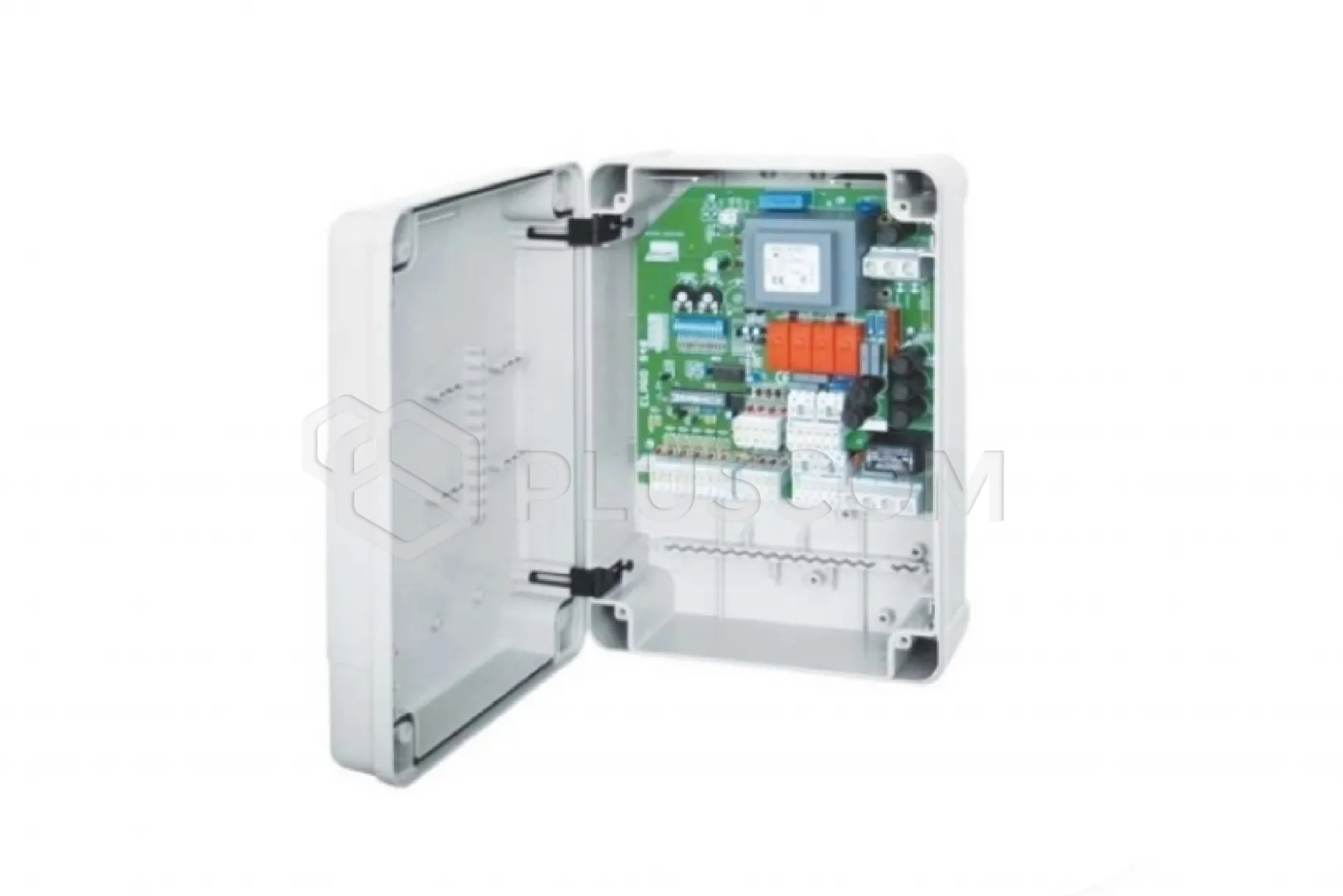 Intuicyjna regulacja za pomocą trymera i przełącznika DIP switch: przygotowanie pod montaż zegara zewnętrznego, karta sterowania sygnalizacją świetlną, karta wtykowa odbiornika radiowego, sygnalizacja stanu automatyki, system kontroli awarii C.S.I. Zasilanie jednofazowe 230 V AC.