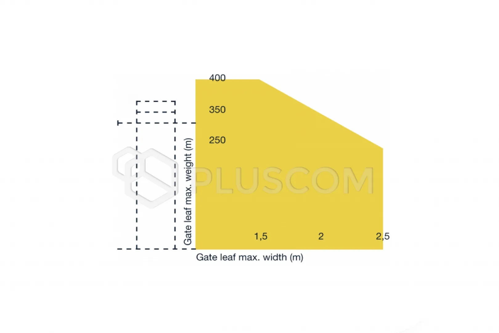 Siłownik elektromechaniczny wraz z tylnymi i przednimi wspornikami mocującymi ze śrubami, wbudowanymi wyłącznikami krańcowymi na otwieraniu i zamykaniu, uszczelką kablową do zasilania i enkodera, dwoma kluczami do otwarcia przesuwanej pokrywy chroniącej urządzenie do awaryjnego otwierania. Dla bram szerszych niż 2 metry na skrzydło zalecany jest elektrozamek.