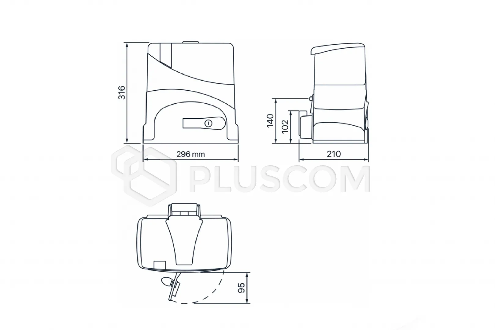 Motoreduktor zasilany prądem stałym o napięciu 24 V, wyposażony w przekładnię ślimakową w kąpieli olejowej i koło zębate z tworzywa sztucznego, na łożyskach kulkowych.