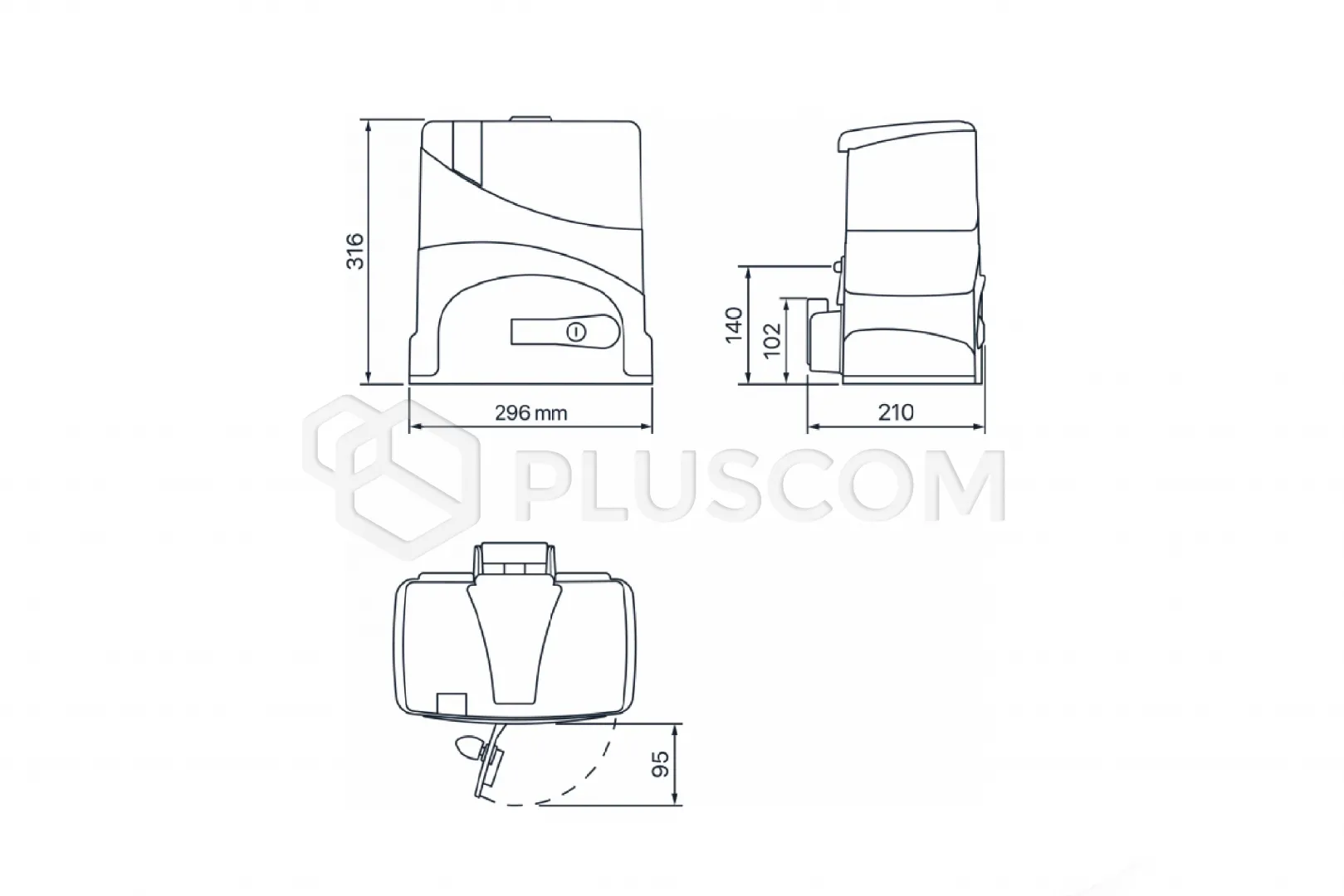 Motoreduktor zasilany prądem przemiennym o napięciu 230 V, wyposażony w przekładnię ślimakową w kąpieli olejowej i koło zębate z tworzywa sztucznego, na łożyskach kulkowych.