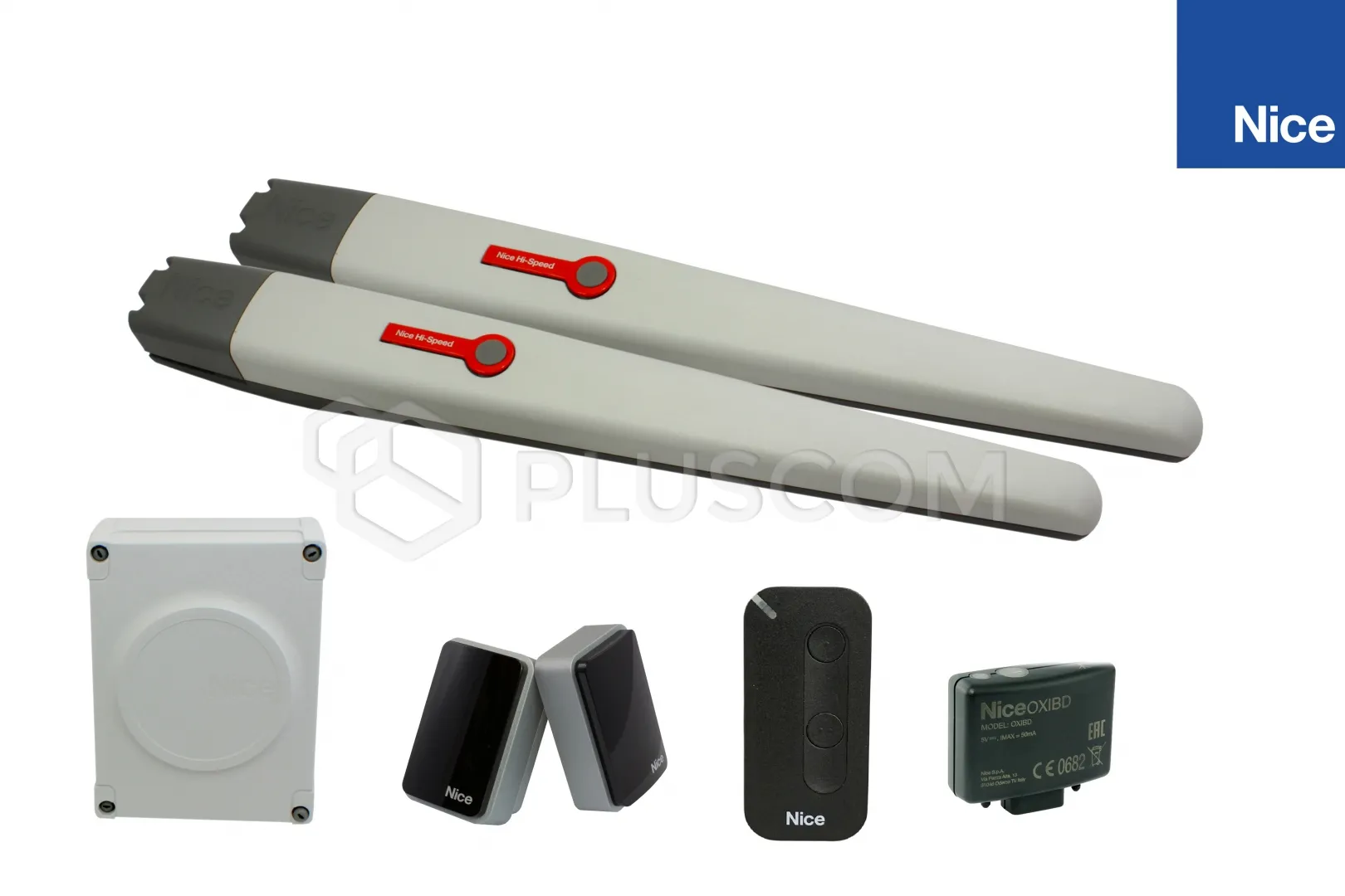 Nice TO6024HSKCE/EN TOONA6 HI-SPEED set : deux actionneurs TO6024HS, unité de contrôle MC824H, récepteur radio OXIBD, 1 télécommande ON2E, photocellules EPMB