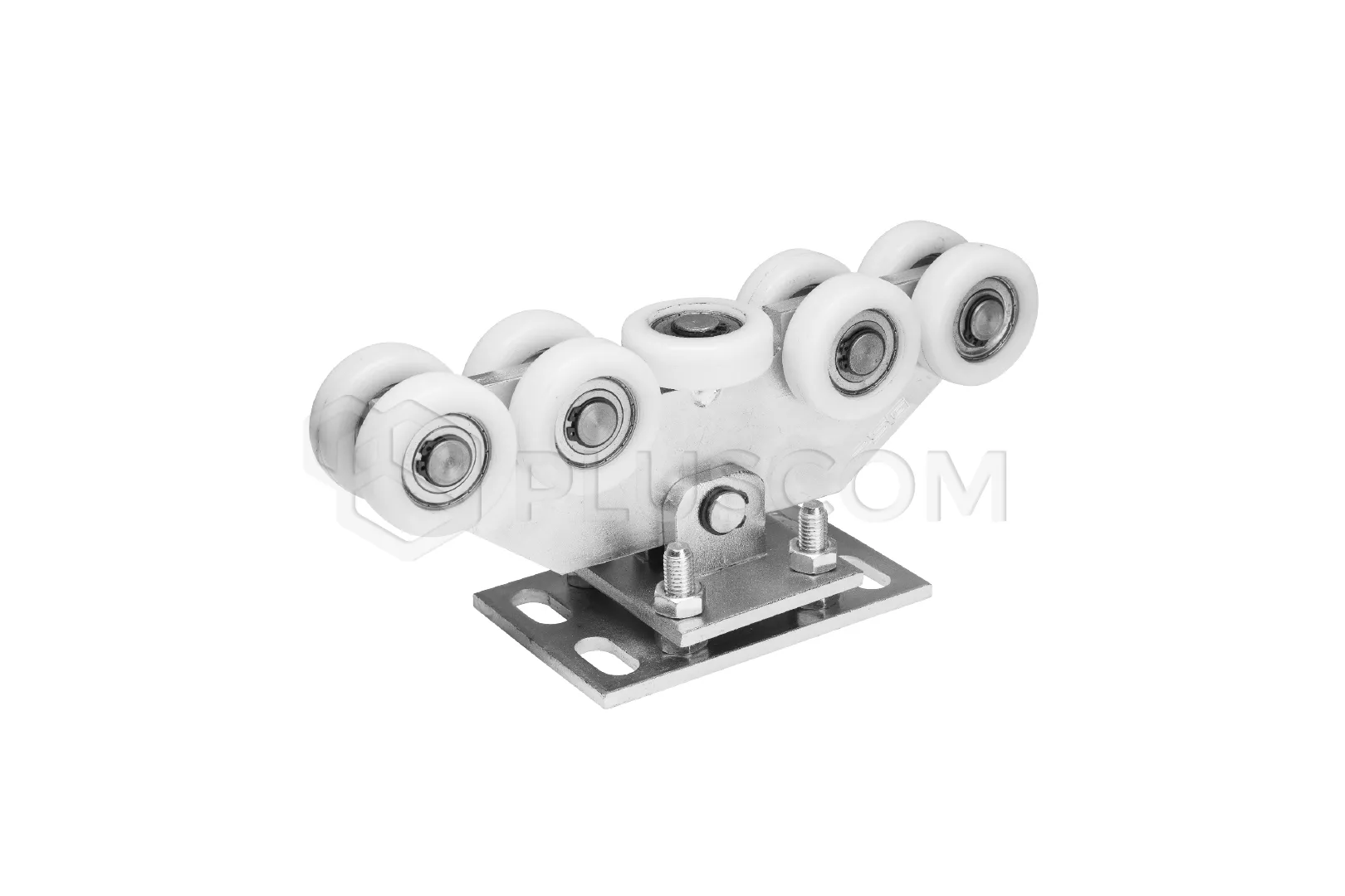 Chariot à 9 roulettes en plastique. Chariot conçu pour rail 80x80x5 mm.