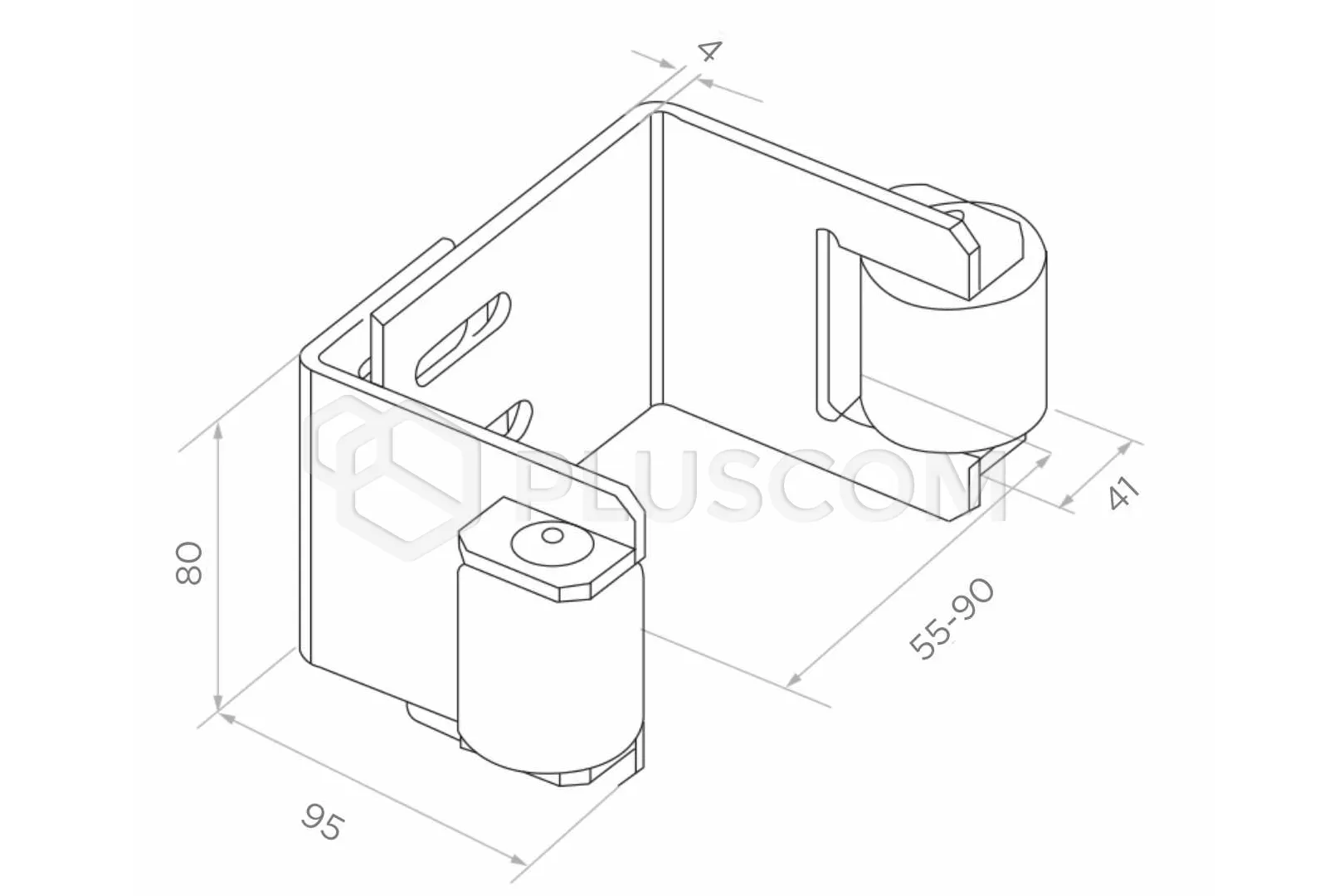 Élément en acier - support supérieur pour portails coulissants autoportants et sur rails, qui les stabilise après la fermeture en empêchant les mouvements latéraux. Il est équipé de deux roulettes de guidage et d'une butée en caoutchouc. Il est possible de le régler dans une plage de 55 à 90 mm. Produit galvanisé.