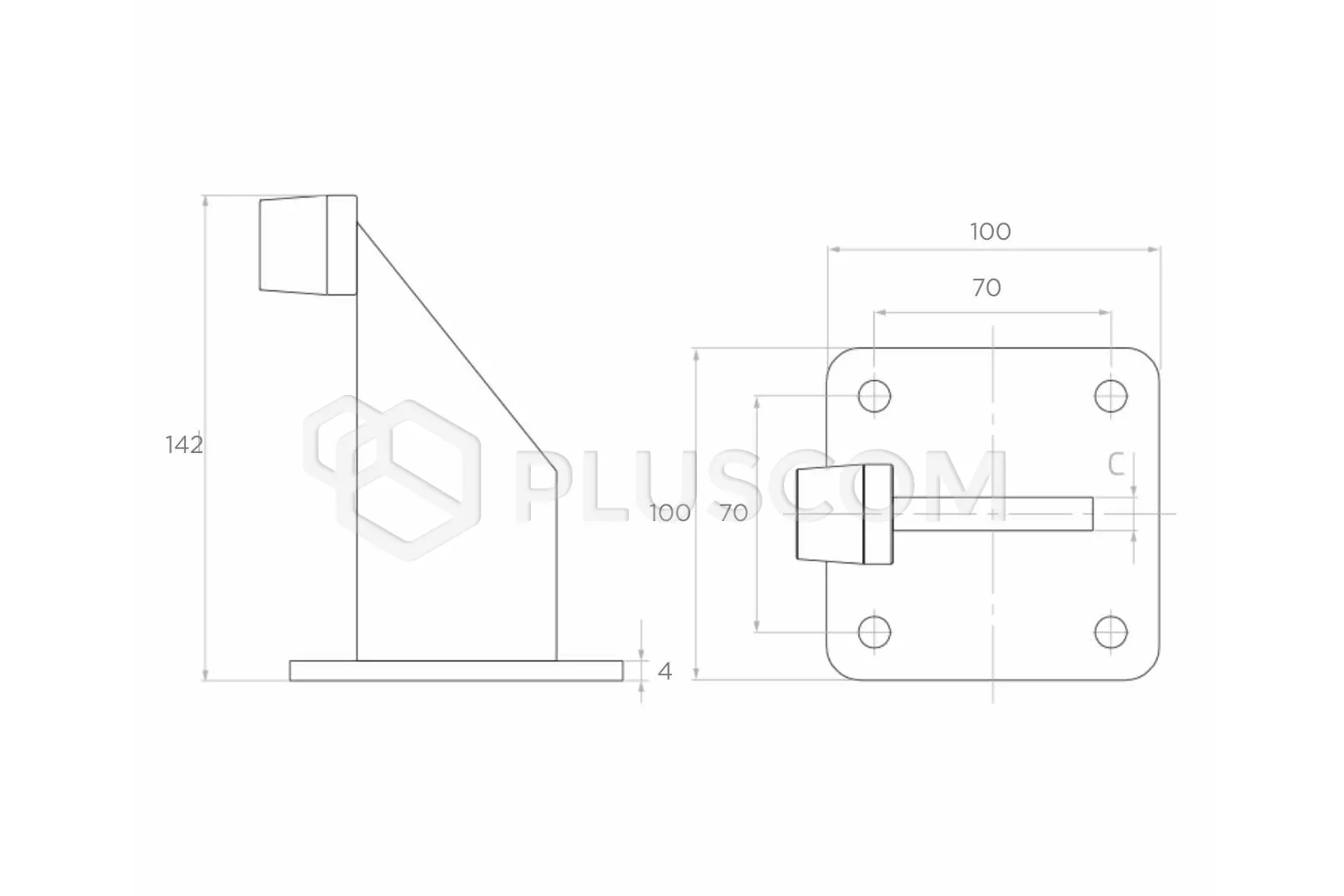 PSG 60.039 Butée extérieure vissée avec plaque 100x100 mm
