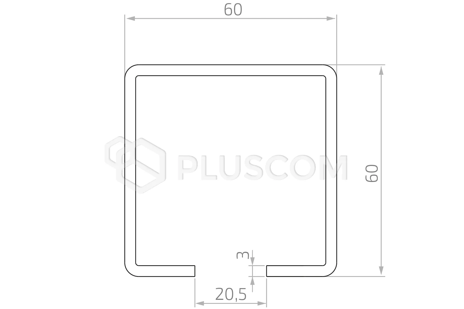 • Section extérieure : 60 x 60 mm