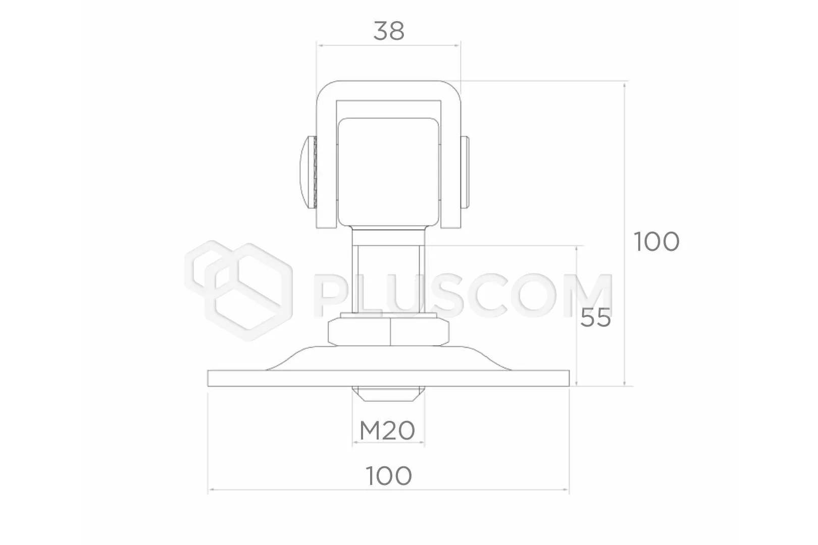 Charnière métallique réglable avec filetage M20. Il est équipé d'une plaque de montage de 100 x 100 mm et d'une épaisseur de 4 mm avec des trous de ø 11 mm permettant le vissage.