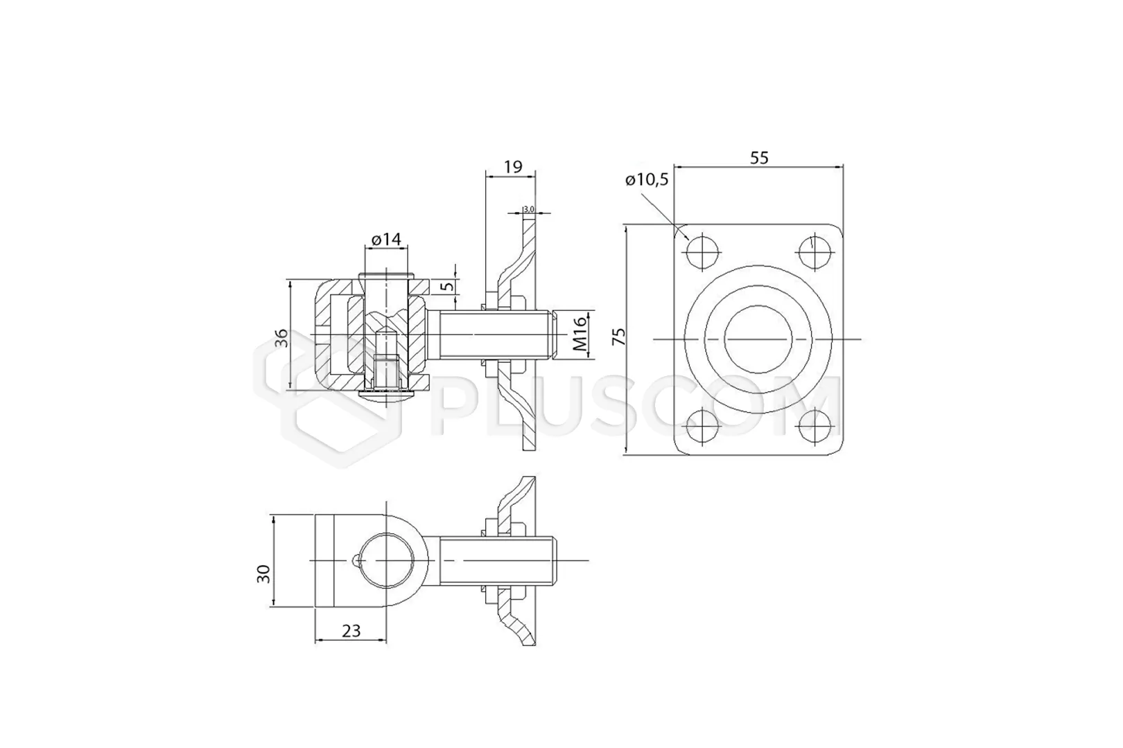 Charnière réglable en acier avec vis filetée M16. Il est équipé d'une plaque de montage de 75x55 mm et d'une épaisseur de tôle de 3 mm. L'utilisation de cette charnière permet un réglage simple et rapide des portails ou des portes battantes après l'installation, à l'aide d'un écrou de réglage.