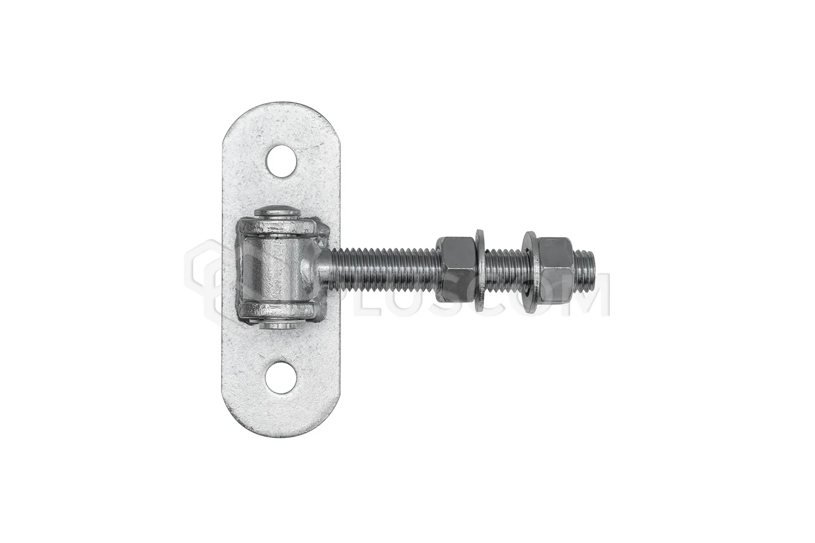 Charnière réglable avec filetage M18 destinée au montage de portails battants et de portillons. Équipé d'une plaque de 140 x 50 mm, avec deux trous permettant le vissage. Produit galvanisé – convient à une utilisation en extérieur, offre une haute résistance à la corrosion.