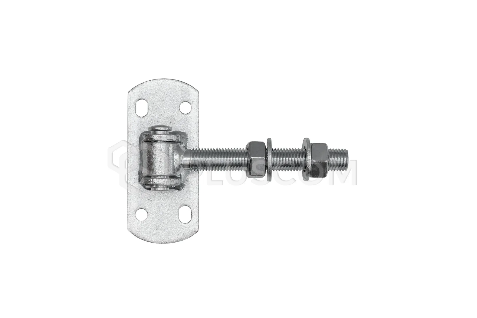 Charnière réglable avec filetage M16, destinée au montage de portails battants et de portillons. Équipé d'une plaque de 115 x 50 mm avec quatre trous permettant de la visser.