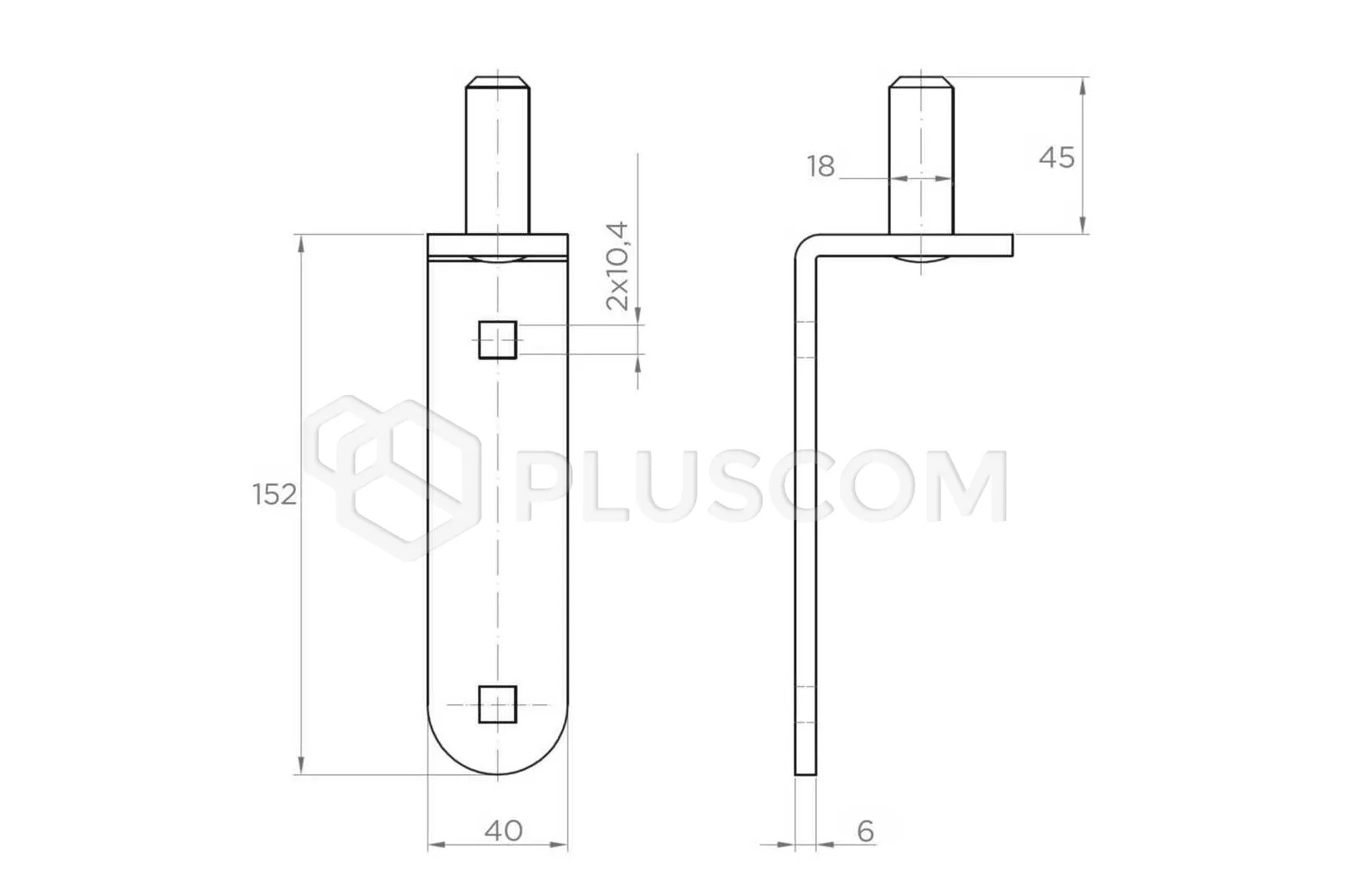 Axe (tige) de charnière à bande destiné aux portails battants. Il est muni de trous de montage pour le vissage.