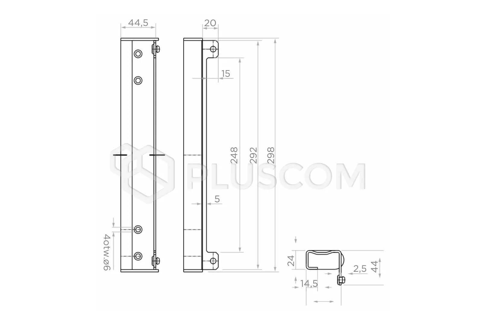 PSG 63.229 Gâche à visser, h = 298, l = 44,5 (48)