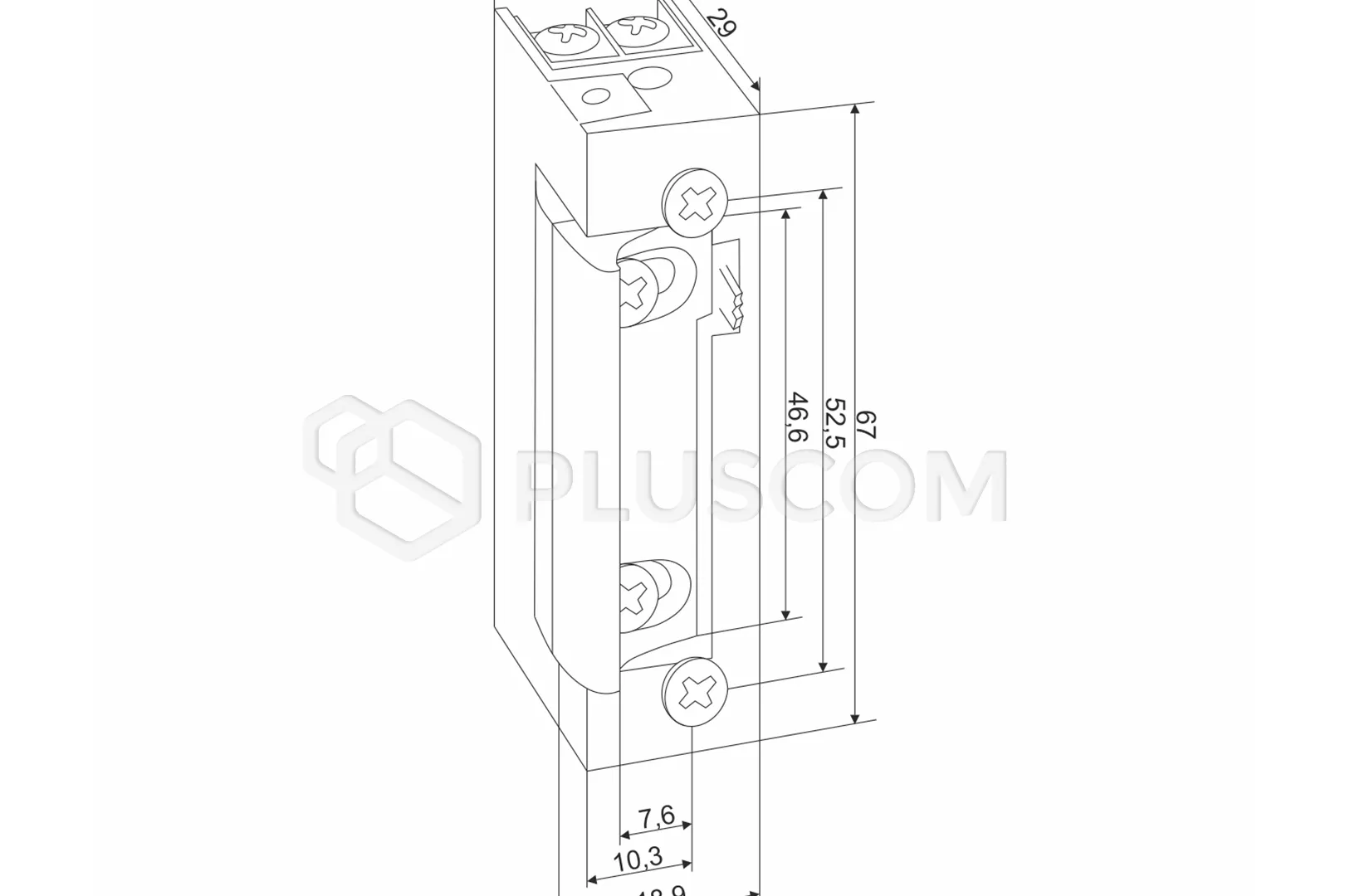 PSG 63.307 Gâche électrique symétrique étroite réglable avec verrouillage et mémoire 1443 12-24 V CA/CC