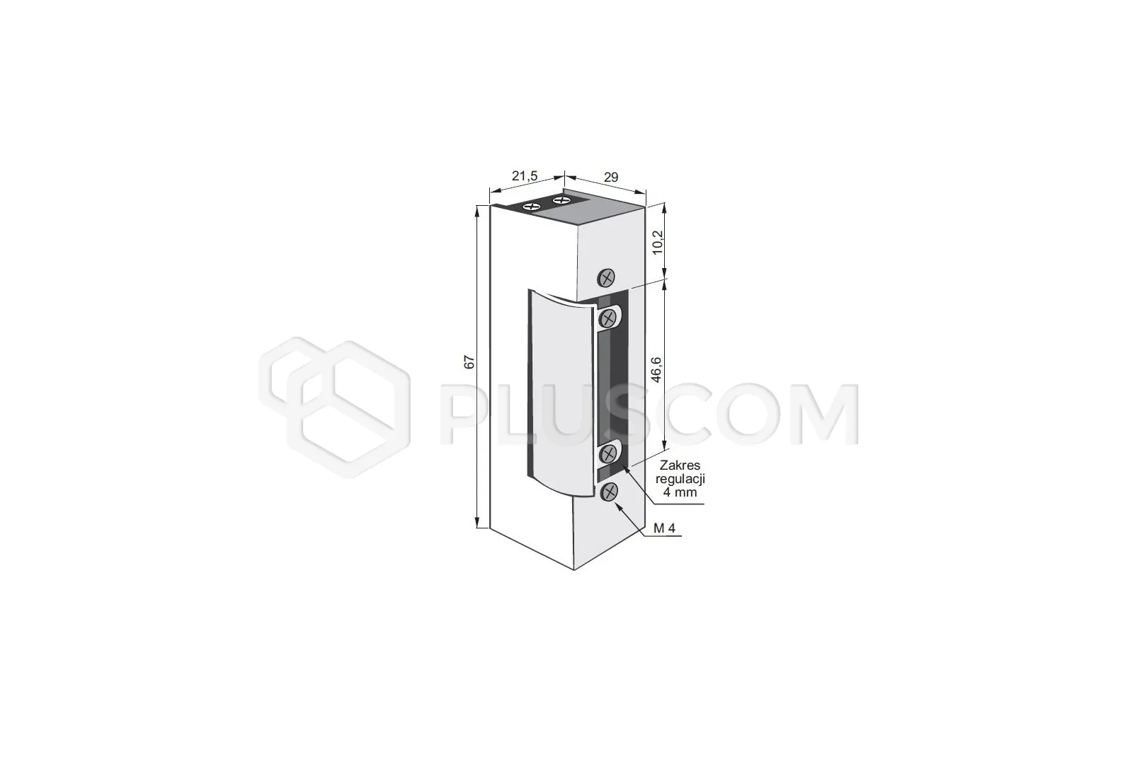 - . Ses dimensions compactes (67 mm de hauteur et 20,5 mm de largeur) en font un gâche électrique idéal pour une installation sur des profilés de porte étroits