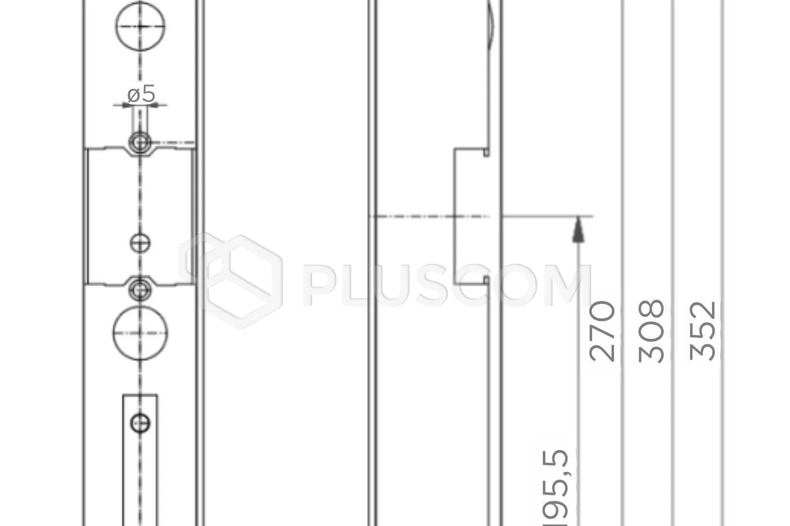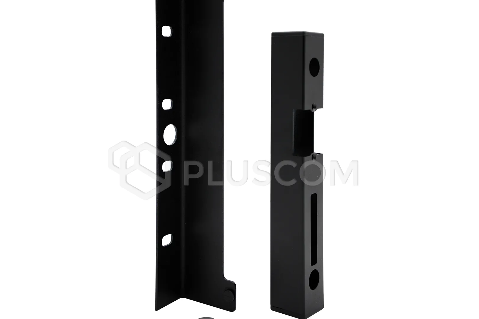 La cornière de 350 mm de long a été conçue pour contourner la plaque de la poignée lors de la fermeture du portail, éliminant ainsi le risque de collision entre la plaque et la cornière de la cassette d'électro-serrure.