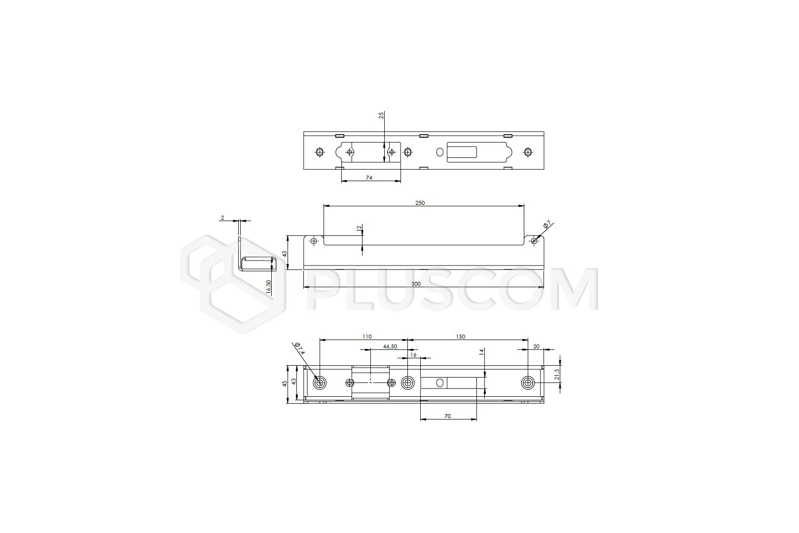 PSG 63.335 Cassette de gâche électrique pour poteau 40 h=300, l=45x17