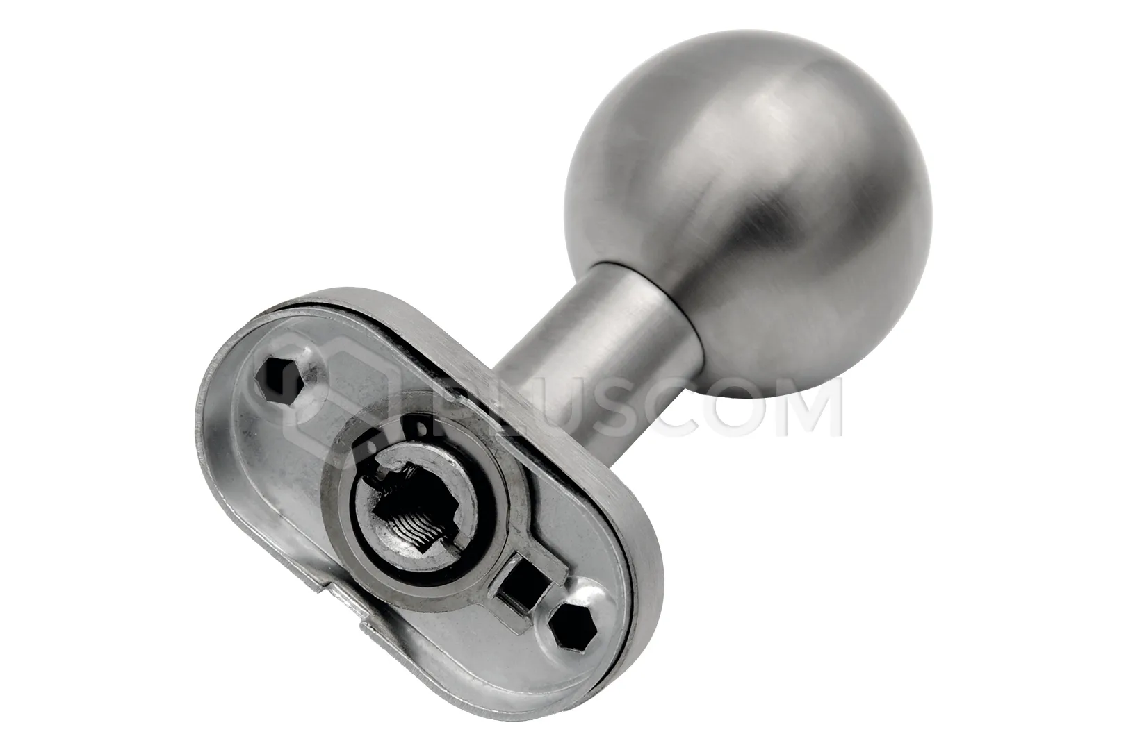 La poignée, montée sur une plaque ovale, est dotée d'une poignée sphérique. Son esthétique minimaliste s'intègre parfaitement dans les espaces modernes et constitue une finition attrayante pour les portes de la maison et du bureau.