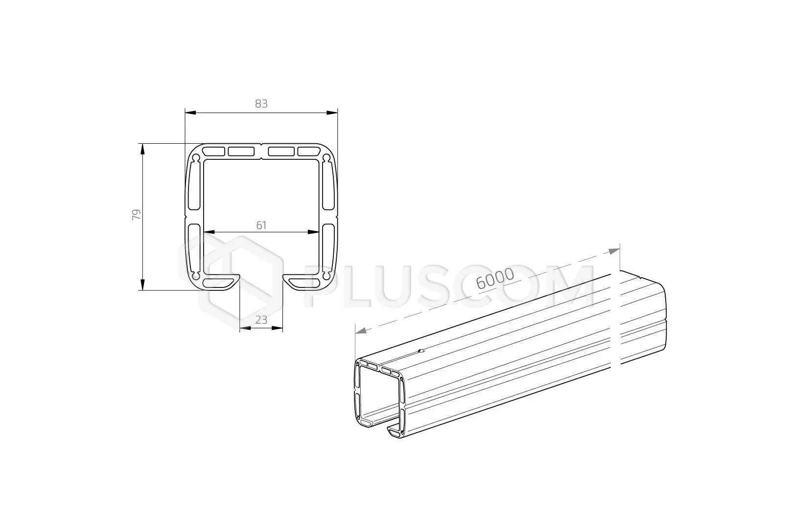 • Dimensions optimales – adaptation à différentes constructions : le profilé a une section de 61 x 83 mm et une longueur de 6000 mm, ces paramètres assurent la compatibilité avec différents systèmes de portes autoportantes, permettant une adaptation aux besoins individuels des utilisateurs